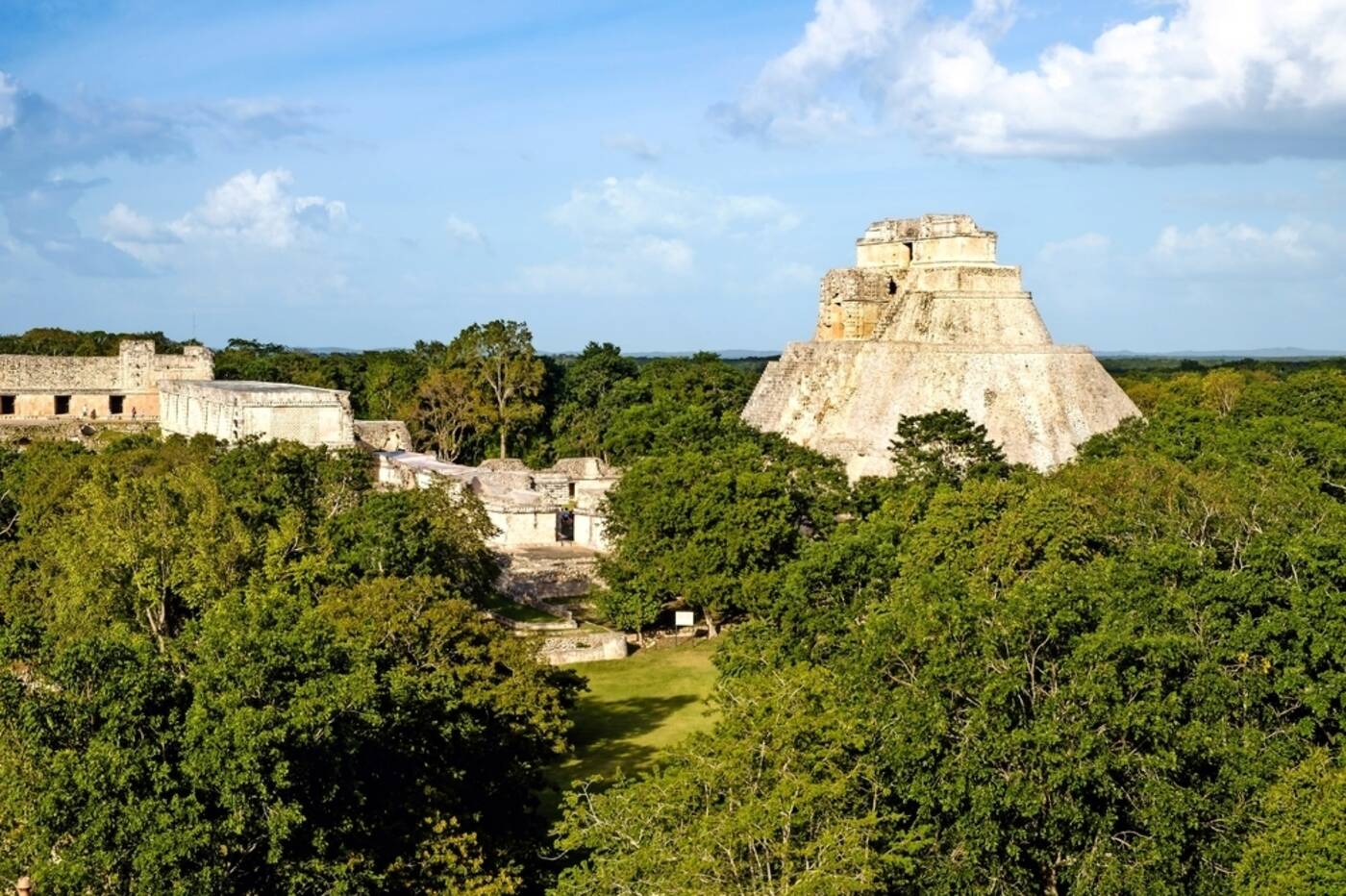 Tauchen Sie in die Geschichte der spätklassischen Maya-Epoche ein. Der Name Uxmal steht für „die dreimal Erbaute“. Ungefähr 600 – 950 n. Chr. entstanden, konnte die Bedeutung vieler Bauten bis heute noch nicht vollständig entschlüsselt werden. Die Anlage beeindruckt den Besucher mit verzierten Fassaden, riesigen Terrassen und Plätzen, Säulen und Torbögen.