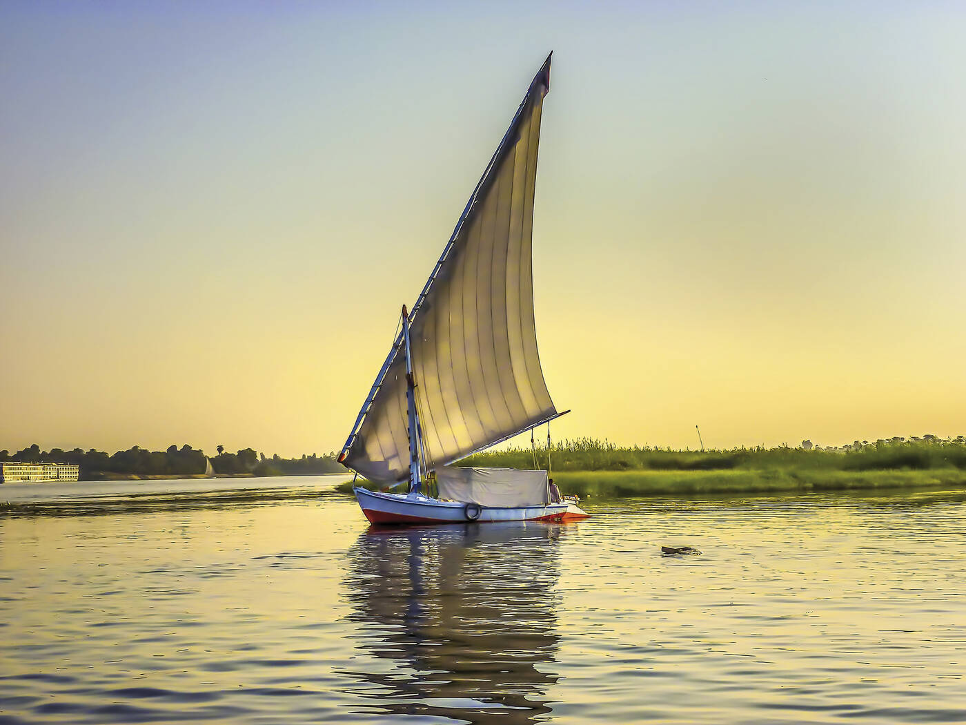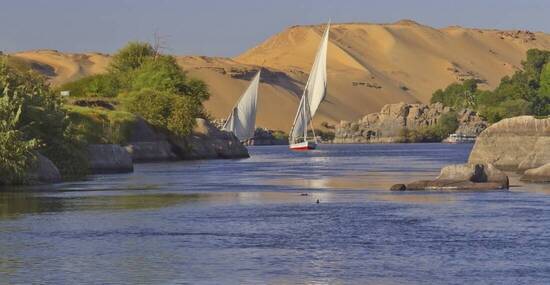 Der Vormittag steht zur freien Verfügung. Gelegenheit zu einem Ausflug nach Abu Simbel zur Besichtigung des Großen Tempels mit den vier Kolossalfiguren von Ramses II und des Hathor-Tempels der Nefertari (550 km, circa € 150,- pro Person). Mittagessen nach Bezug der Kabinen auf unserem eleganten Fünf-Sterne-Nilschiff. Drei Nächte an Bord. Nachmittags eine idyllische Felukenfahrt.