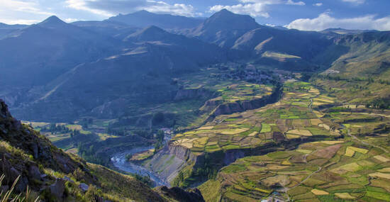 Vormittags Besuch der Turmgräber (Chullpas) von Sillustani am Lago Umayo. Anschl. über Juliaca zum Aussichtspunkt von Lagunillas auf 4.410 m. Weiterfahrt über Santa Lucia und Imata zum Colca-Tal, 70 km lang, bis zu 3.000 m tief, umrahmt von den erloschenen Vulkanen Corupuna (6.425m) und Ampato (6.310 m, 395 Tages-km).