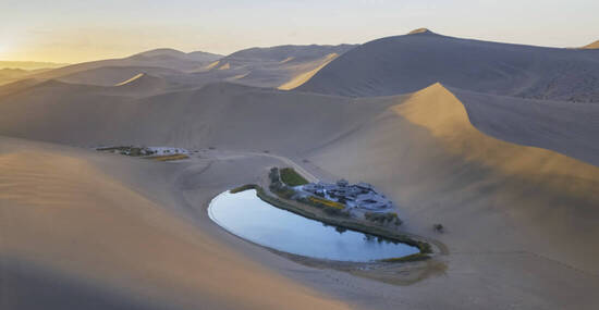 Morgens Fahrt mit dem Schnellzug nach Liuyuan, dem Bahnhof von Dunhuang (ca. 4h). Die Stadt gehört zur Provinz Gansu. Am Nachmittag besuchen wir die "singenden" Sanddünen im Randbereich der Wüste Gobi, und den einzigartigen Mondsichelsee, ein landschaftlicher Höhepunkte inmitten der Wüste, einer von Dünen umgebenen Oase. Am Abend genießen wir ein Essen in einem lokalen Restaurant, anschl. empfhielt sich ein individueller Rundgang über den Nachtmarkt.
