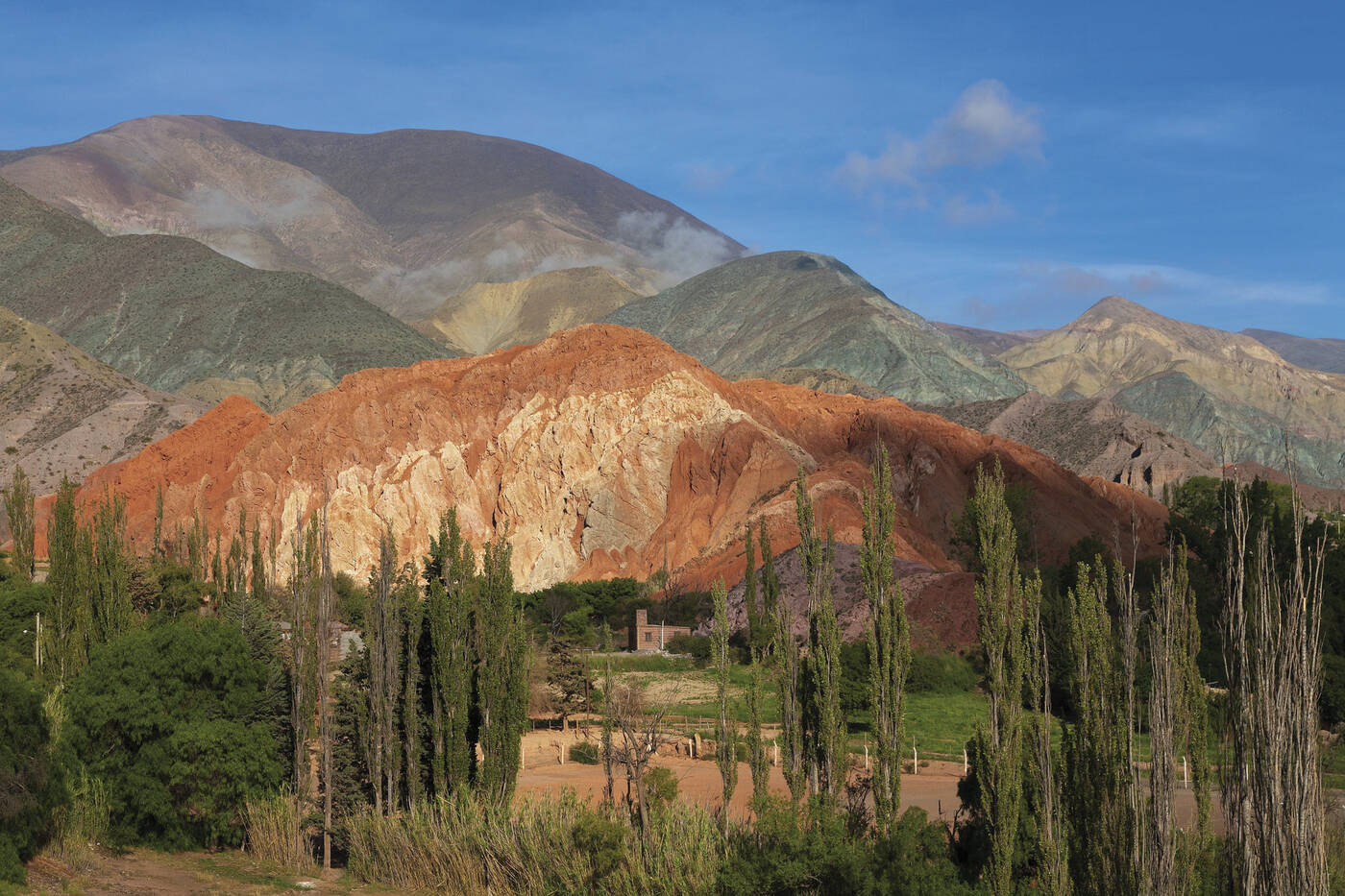 Zurück nach Norden, zunächst durch die Schlucht Quebrada de las Conchas nach Salta und weiter zur Quebrada de Humahuaca mit dem bunten Sieben-Farben-Berg bei Purmamarca. Heute oder am nächsten Tag Besuch von indigenen Dörfern, der Kirche von Uquia und der Festungsruinen von Tilcara. Übernachtung in Purmamarca (420 Tages-km).