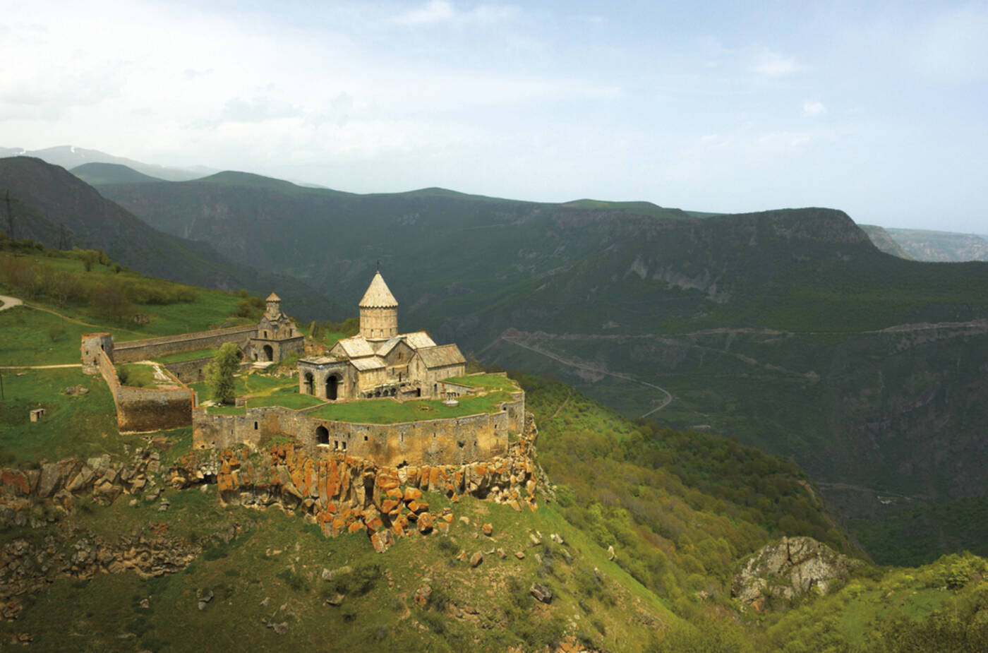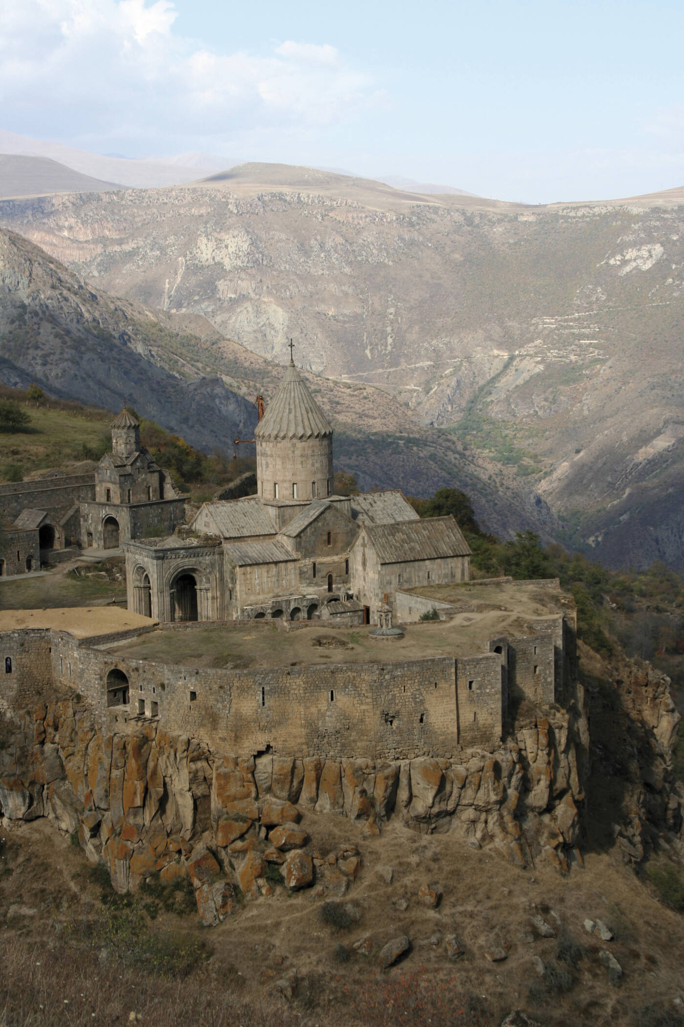 Morgens spektakuläre Fahrt mit der längsten Pendelseilbahn der Welt (5.750m Länge) über die steile Worotanschlucht zum Kloster Tatev. Besichtigung der über der Schlucht gelegen Klosteranlage. Nachm. Weiterfahrt nach Chndzoresk. Wanderung über eine Hängebrücke zum Höhlendorf mit den Höhlen, in denen in der Blütezeit im 17. Jh. mehr als 2.000 Einwohner lebten. Abendessen im Hotel.