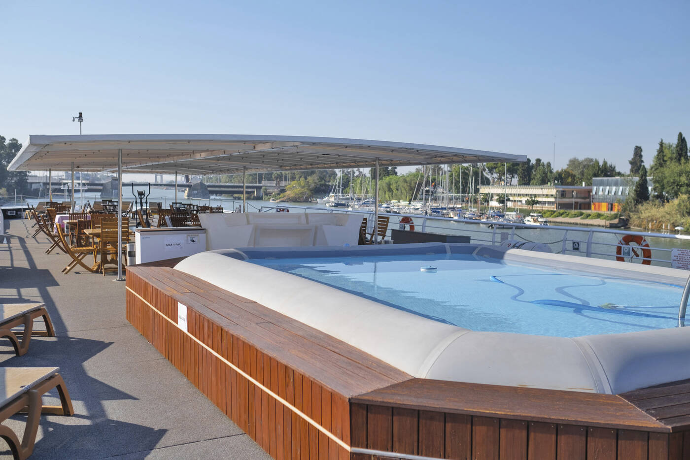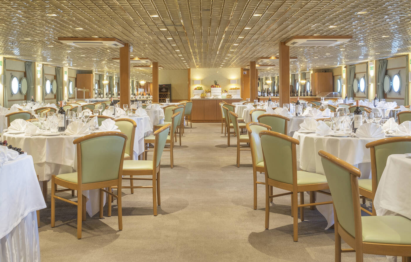 Auf der LA BELLE DE CADIX werden warme Farben und Komfort miteinander verbunden. Alle Kabinen sind Außenkabinen, die ca. 12 m² groß sind. Die stilvoll gestalteten Kabinen verfügen über eine individuell regulierbare Klimaanlage / Heizung, Dusche / WC, SAT-TV, Telefon, Haartrockner und Safe. Auf dem Oberdeck haben die Kabinen ein großes, zu öffnendes Panoramafenster und auf dem Mitteldeck Panoramafenster mit zu öffnendem Oberlicht. Alle Hauptdeck-Kabinen sind mit großen, nicht zu öffnenden Bullaugen ausgestattet. Die Kabinen bieten nebeneinanderstehende Betten, die auf Wunsch auch getrennt gestellt werden können. Im gemütlichen Restaurant verwöhnen wir Sie mit Gaumenfreuden aus unserer Küche nach einem ereignisreichen Tag. Zum Verweilen gibt es einen gemütlichen Salon. An Deck entspannt man sich unter einem großen Sonnensegel oder im Liegestuhl und kann sich im kleinen Pool erfrischen.