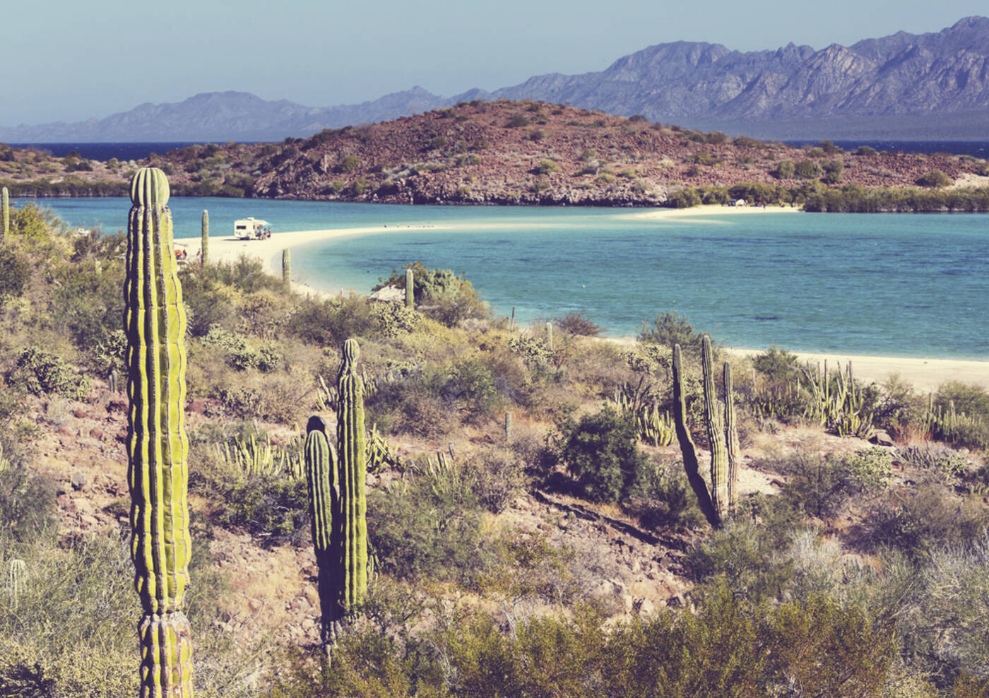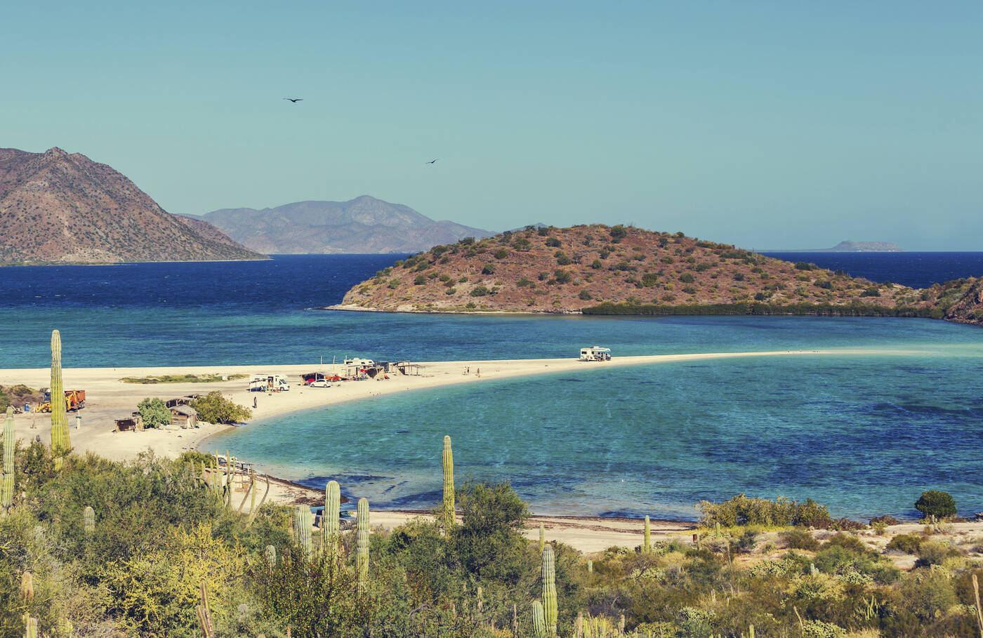 Wir lassen uns auf unserer Fahrt entlang der Bahía Concepcíon verzaubern. Die malerische Kulisse aus tiefblauem Meer, weißen Sandstränden und den mächtigen Cardón-Kakteen im Hintergrund ist einzigartig. Die Bucht ist ein ausgewiesenes Meeresschutzgebiet, in dem verschiedene Vogelarten und auch Wale, Delfine und Walhaie ihren Lebensraum haben.