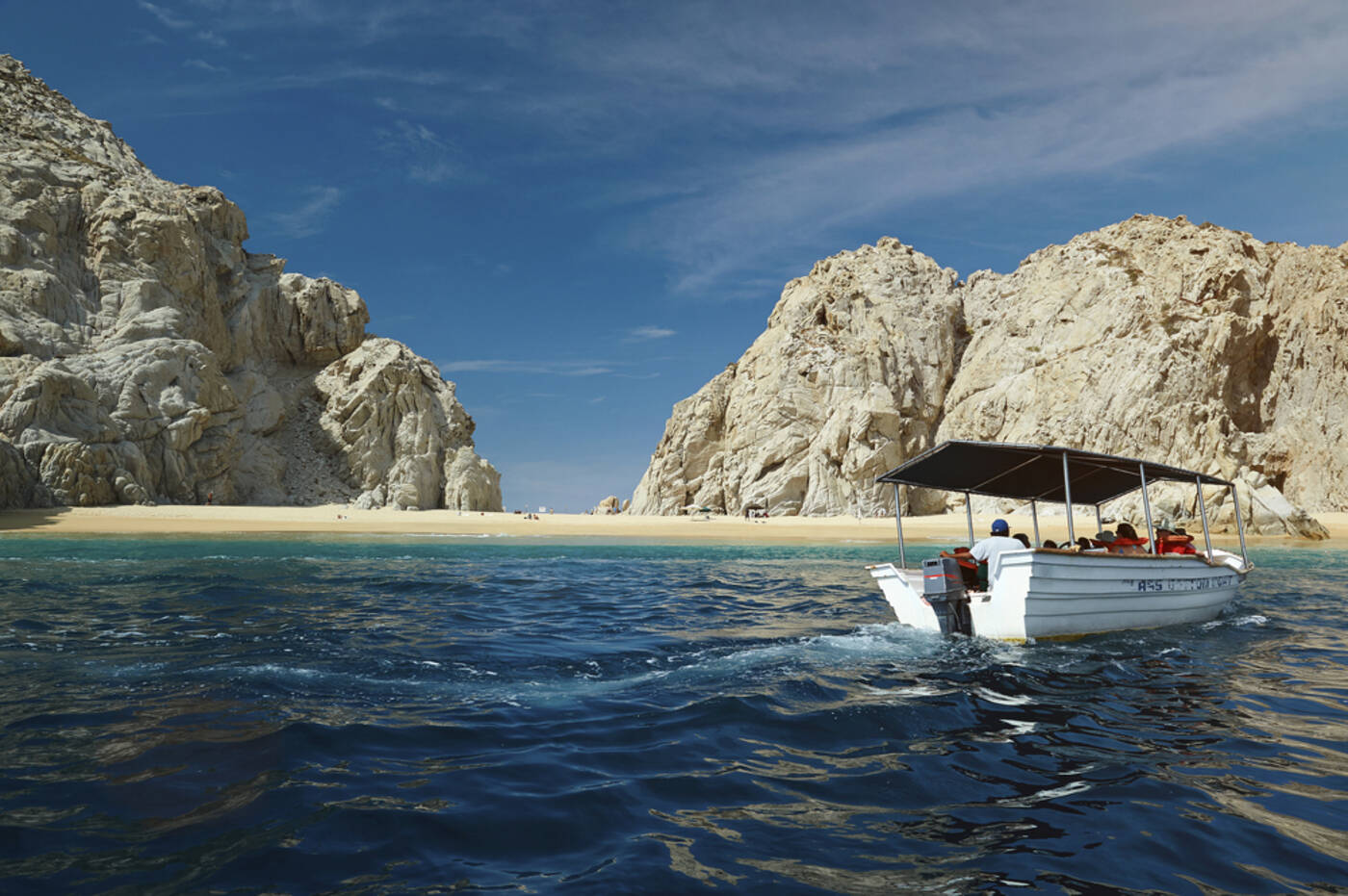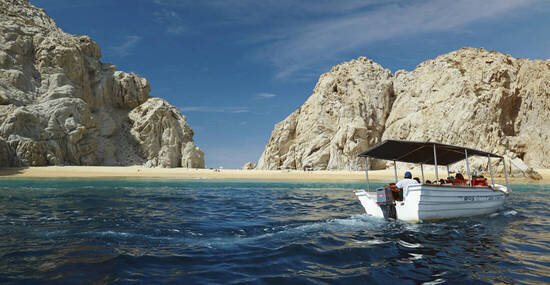Alles dominierend, thront der gewaltige Felsen Los Arcos als südlichster Punkt der Baja California als Markenzeichen über der Bucht von Cabo San Lucas. Auf einer Bootsfahrt haben wir Gelegenheit, die Vielfalt des Meereslebens am Los Arcos zu studieren und uns am Strand der Liebenden, dem Playa del Amor, im Wasser zu erfrischen.