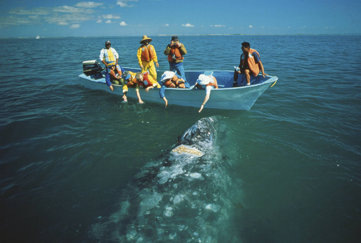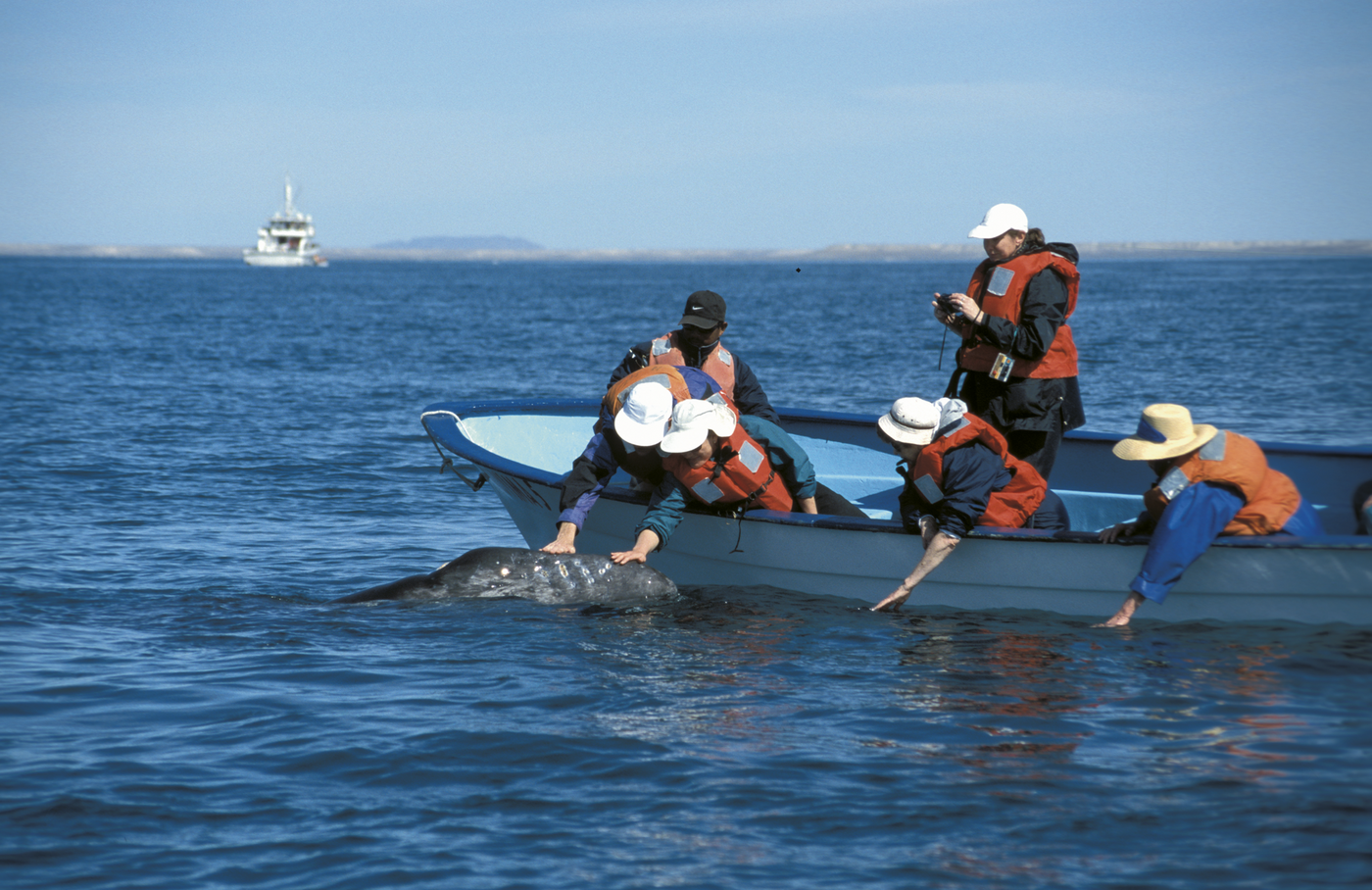 Fahrt durch die Installationen der Salzgewinnungsanlage von Guerrero Negro zum Walbeobachtungspier, von dem wir mit Panga-Booten (wendige Motorboote) hinaus auf die Lagune Ojo de Liebre fahren, um die amerikanischen Grauwale in ihrer natürlichen Umgebung zu beobachten. Unser Ausflug kann entsprechend den Witterungsverhältnissen durchaus nass und anstrengend sein.