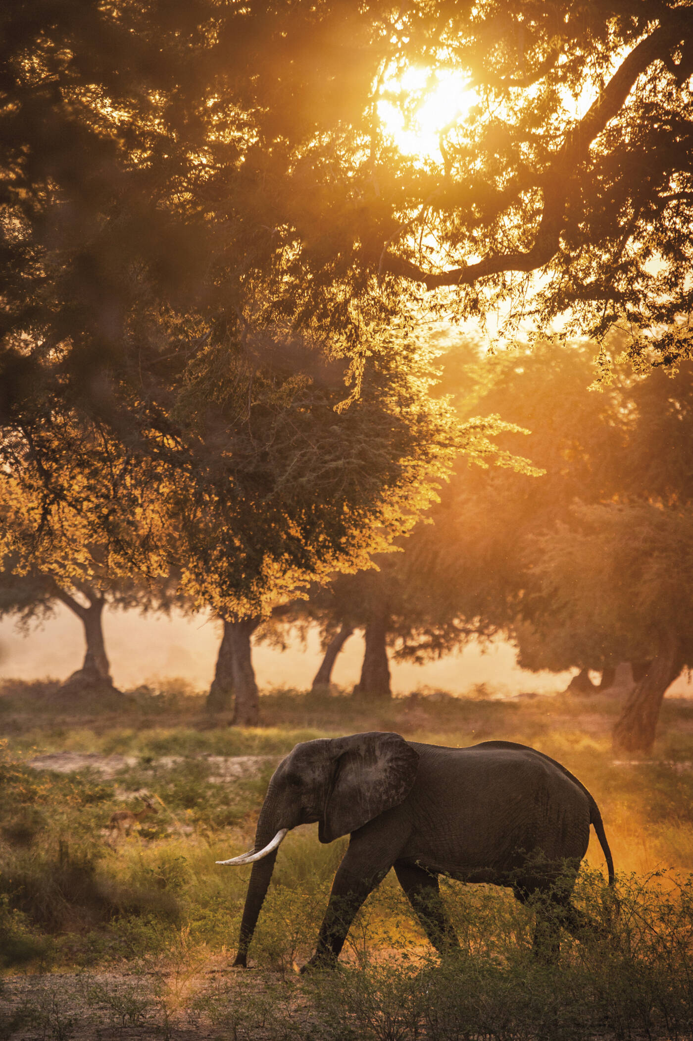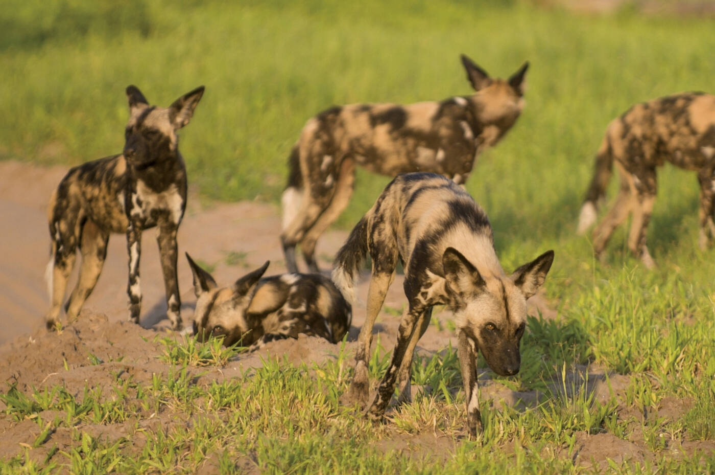 Vor- und nachmittags Safaris. Zwei Safaris im offenen Fahrzeug, wir fahren am Wasser und am Flussufer entlang, suchen nach Spuren, folgen dann den Pisten durch Busch und Savanne. Unsere Guides sind täglich im Reservat unterwegs, ihre Sinne, die atemberaubenden Momente zu finden, geschärft. Manchmal verrät die Natur sich auch selbst: viele Aasgeier kreisen hoch oben am Himmel und sitzen in großer Anzahl in umliegenden Bäumen, warten ungeduldig darauf, sich auf die Kadaver zu stürzen, zumeist ein Anzeichen einer erfolgreichen Jagd, oft sind die Jäger noch in unmittelbarer Nähe aufzufinden. An den beiden Nachmittagen geht es wieder per Boot die Flussufer entlang, wo riesige Warane Unruhe im Unterholz stiften, große Krokodile und Nilpferdherden auf den Uferbänken sich von den letzten Sonnenstrahlen aufwärmen lassen. Die Sonnenuntergänge sind etwas ganz besonderes, zumeist farbenprächtig und von letzten Rufen der Tierwelt begleitet, bevor es dunkel wird.