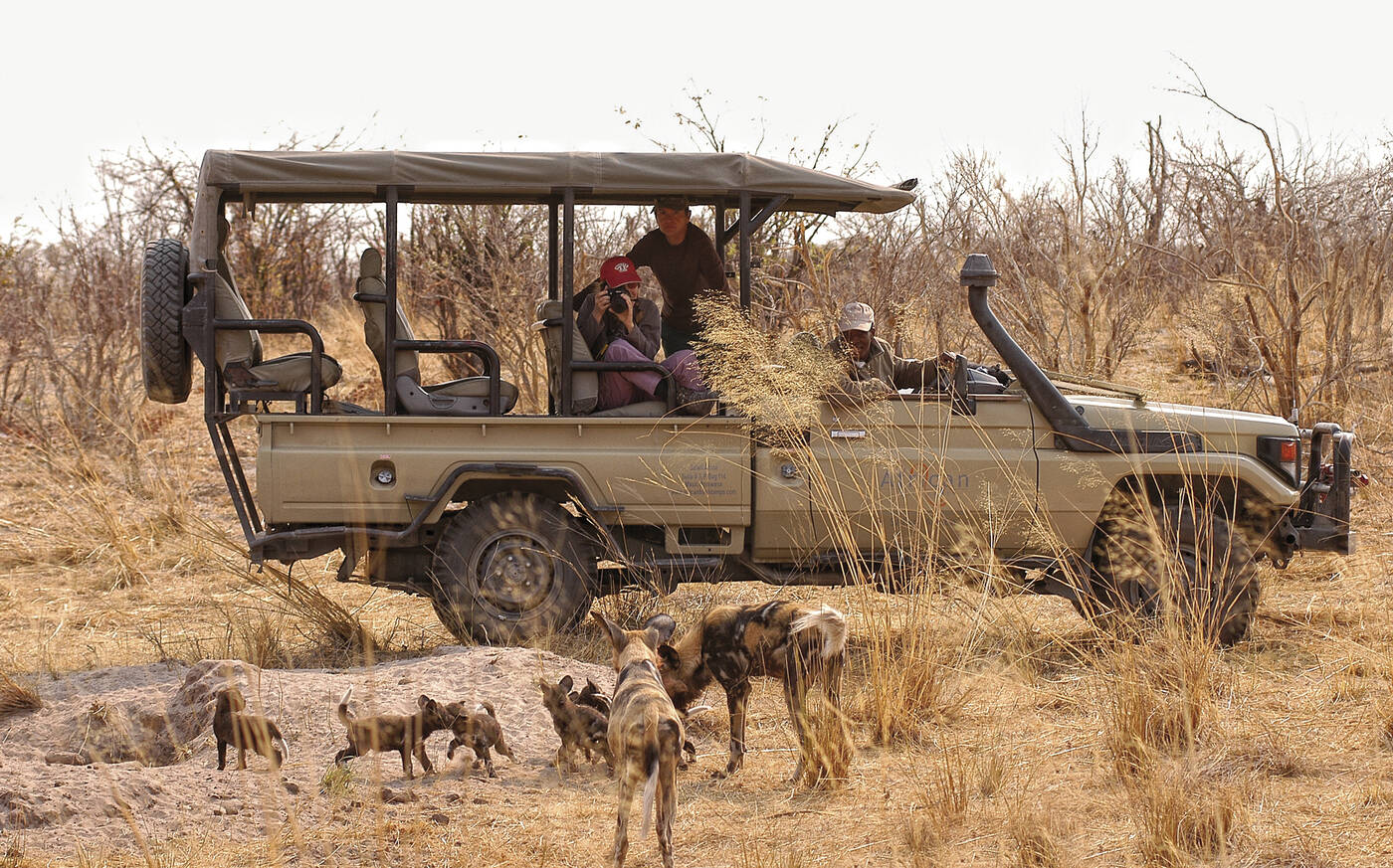 Täglich schwärmen wir aus, suchen vor- und nachmittags – auch mal abends – während ausgedehnter Safaris im offenen Fahrzeug die wilden Tiere. Die Safariguides mit geübtem Auge und scharfem Sinn. Unerwartet Interessantes bei Fauna und Flora entdecken wir während der Fußsafari. Im Mokoro (einheimisches Kanu) gleiten wir dann die Wasserkanäle entlang. Wir erleben im Schilf und Papyrus, in den malerisch schönen, von Lilien bedeckten Lagunen eine buntschillernde Vogel- und Insektenwelt.