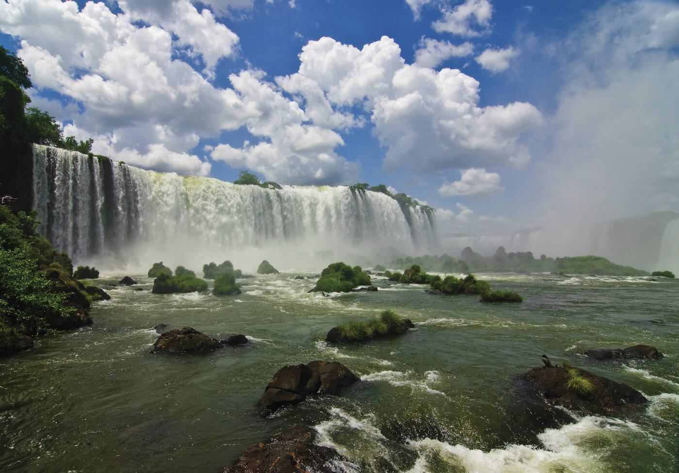Halbtägiger Besuch der argentinischen Seite mit einem System von Wanderwegen und "hautnahem" Erlebnis der Fälle. Spaziergang zum „Teufelsrachen“, wo zeitweise 13.000 Kubikmeter Wasser pro Sekunde 90 Meter tief hinabstürzen. Gelegenheit zu einem Hubschrauber-Rundflug (ca. € 190,– p.P.) oder zu einer Bootsfahrt an die Fälle heran (ca. € 120,– p.P.).