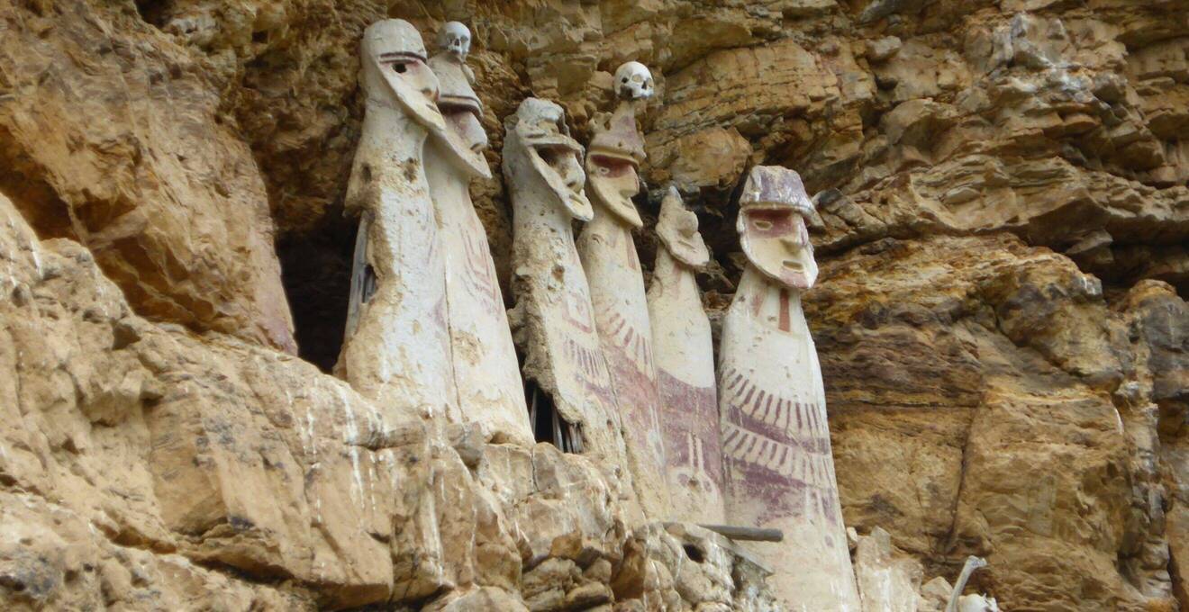 Ein abschließender Höhepunkt dann am nächsten Tag, als wir von Cruz-Pata aus zu den Sarkophagen von Karajia aufbrechen. Je zweieinhalb Meter hohe Sarkophag-Figuren, hoch in eine Felswand hineingestellt, erinnern an die Moais auf der Osterinsel. Heute sind sie weltweit in Fotografien abgebildet, sozusagen das „Logo“ der Chachapoyas.