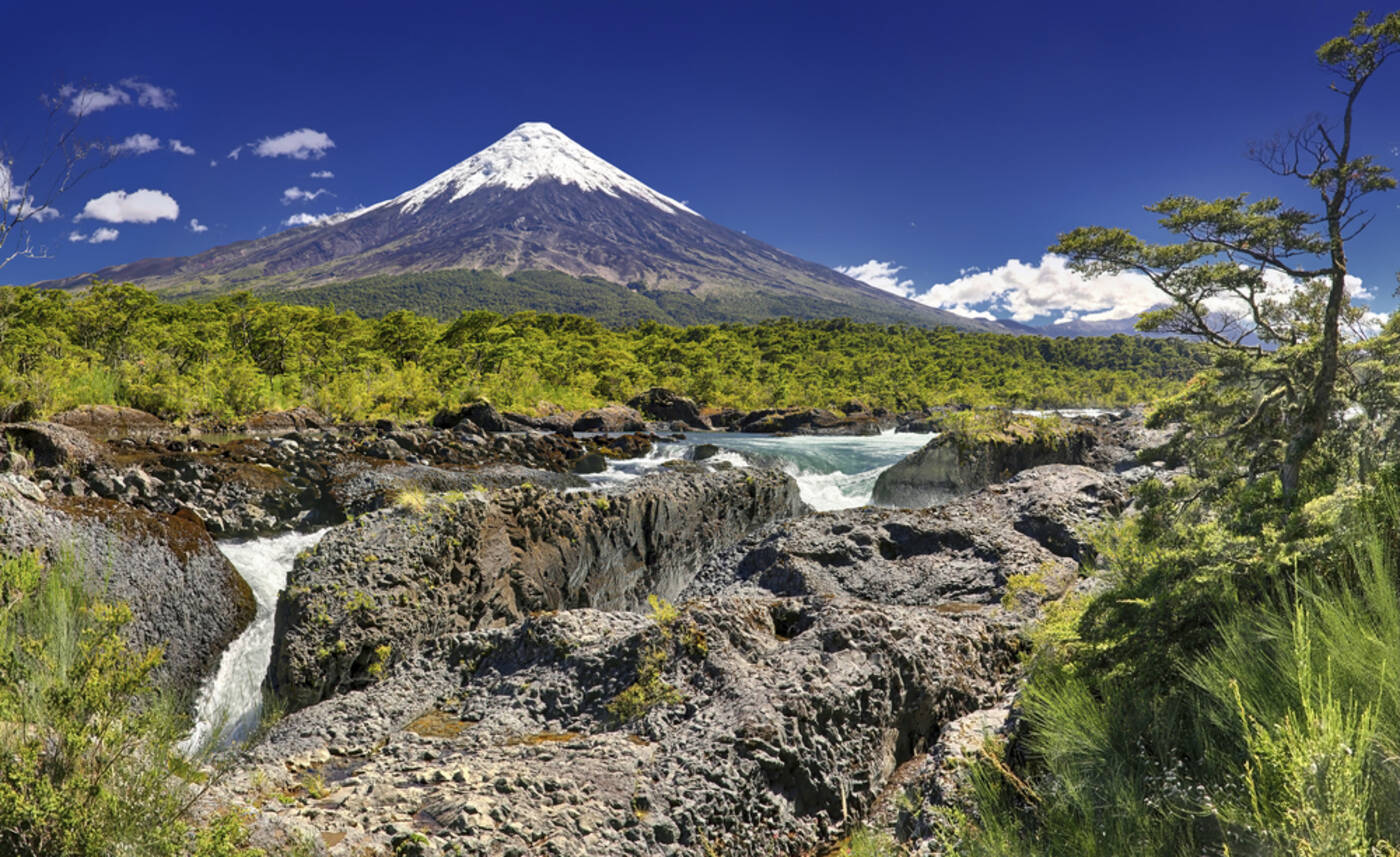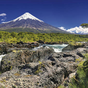 Entlang des Llanquihue-Sees geht die Fahrt mit Blick auf die Vulkane Osorno und Calbuco zu den Wasserfällen von Petrohué, die wild über das dunkle Lavagestein sprudeln. Im Pioniermuseum erfahren wir mehr über die Besiedlungsgeschichte der entlegenen Region. Nach einer Bootsfahrt auf dem Allerheiligensee fahren wir hinauf auf den Vulkan Osorno (bis 1.200m). Wir unternehmen eine leichte Wanderung auf den erkalteten Lavafeldern und verbessern mit jedem Höhenmeter den fantastischen Panoramablick auf die umliegenden Vulkane und den tiefblauen See tief unter uns (130 Tages-km).