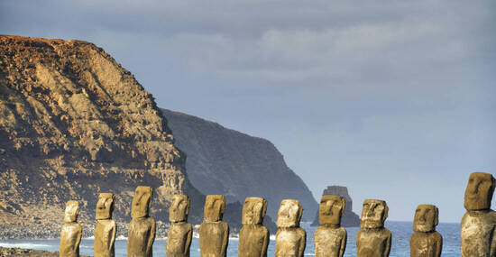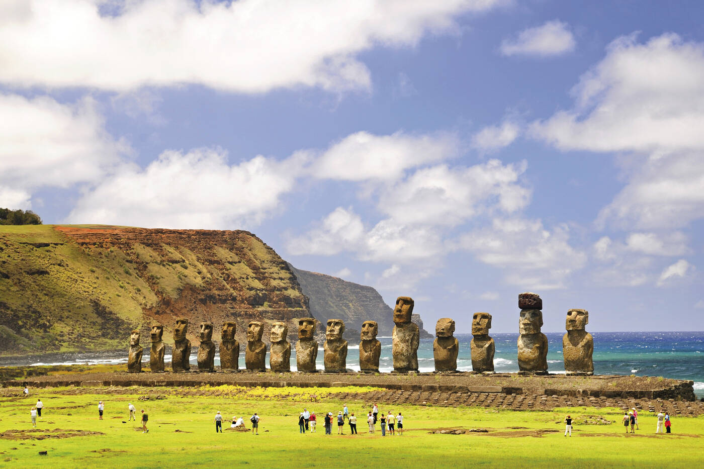 Zwei Halbtagesausflüge: Rano Kau Vulkan und Zeremoniendorf Orongo mit den Petroglyphen des Vogelmenschen und Blick auf die vorgelagerten Inseln Motu Nui, Motu Iti und Motu Kao Kao. Wir besichtigen außerdem den Ahu Akivi (7 Moais) und den Steinbruch Puna Pau, wo die steinernen Kopfbedeckungen der Moai-Figuren hergestellt wurden (Anm.: Änderungen in der Reihenfolge der Ausflüge bleiben vorbehalten).