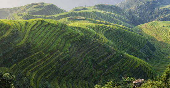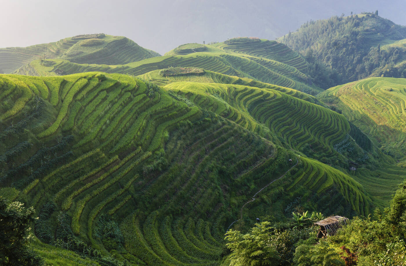 Vormittags Fahrt nach Guilin. Wir besuchen den Fubo-Berg, der direkt am Li-Fluss liegt, von dem man eine herrliche Aussicht auf die Stadt hat, sowie die eindrucksvolle Schilfrohrflötenhöhle. Anschließend erfolgt unsere Weiterfahrt zu den Longji-Reisterrassen. Dazu steigen wir vom Eingangsbereich der Terrassen auf nach Pingan, einem kleinen, autofreien Dorf (unser Hauptgepäck verbleibt im Eingangsbereich, wir nehmen nur ein kleines Gepäckstück für eine Übernachtung mit). Abends verbleibt Zeit für den Sonnenuntergang über den Reisterrassen.