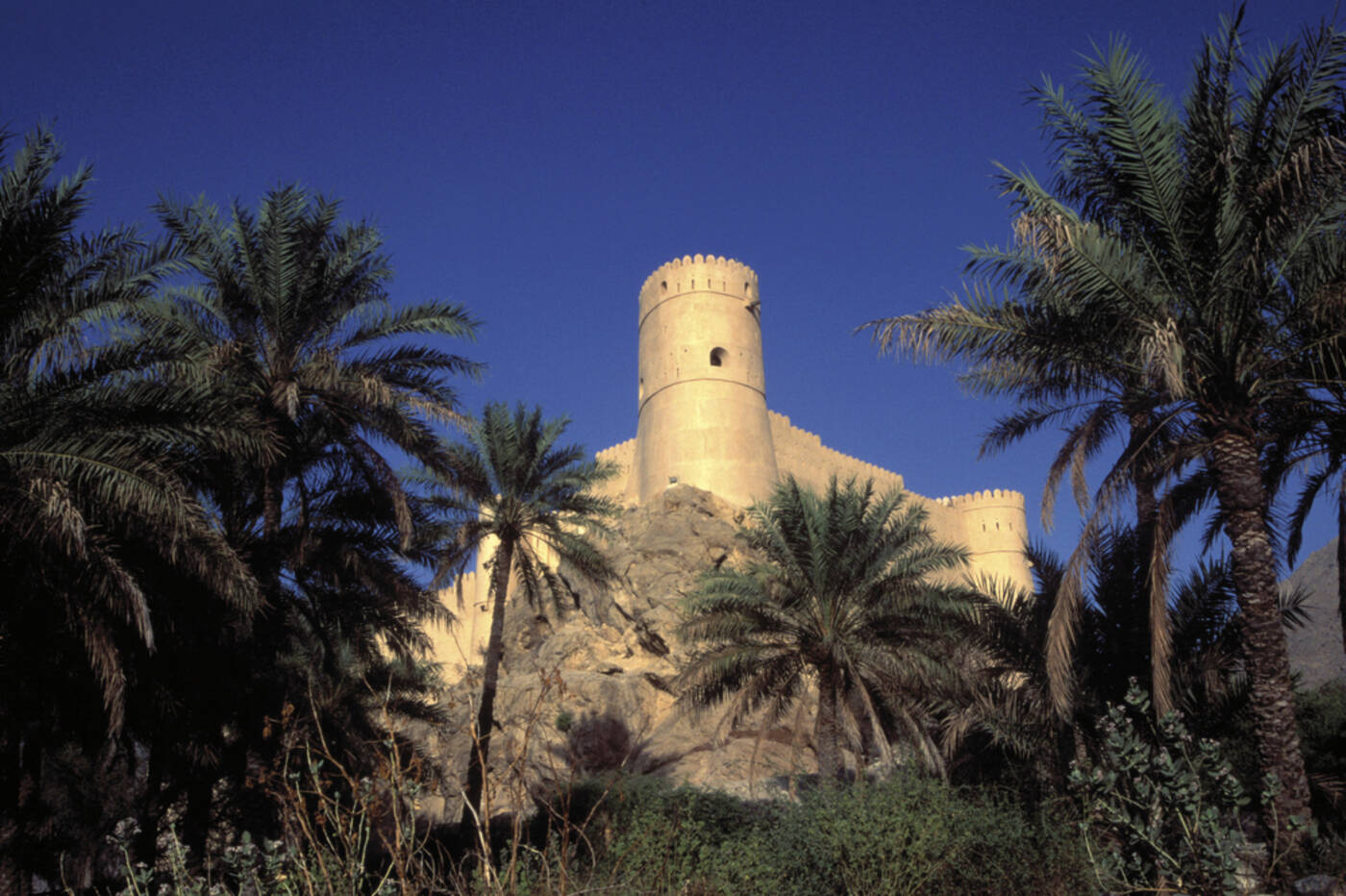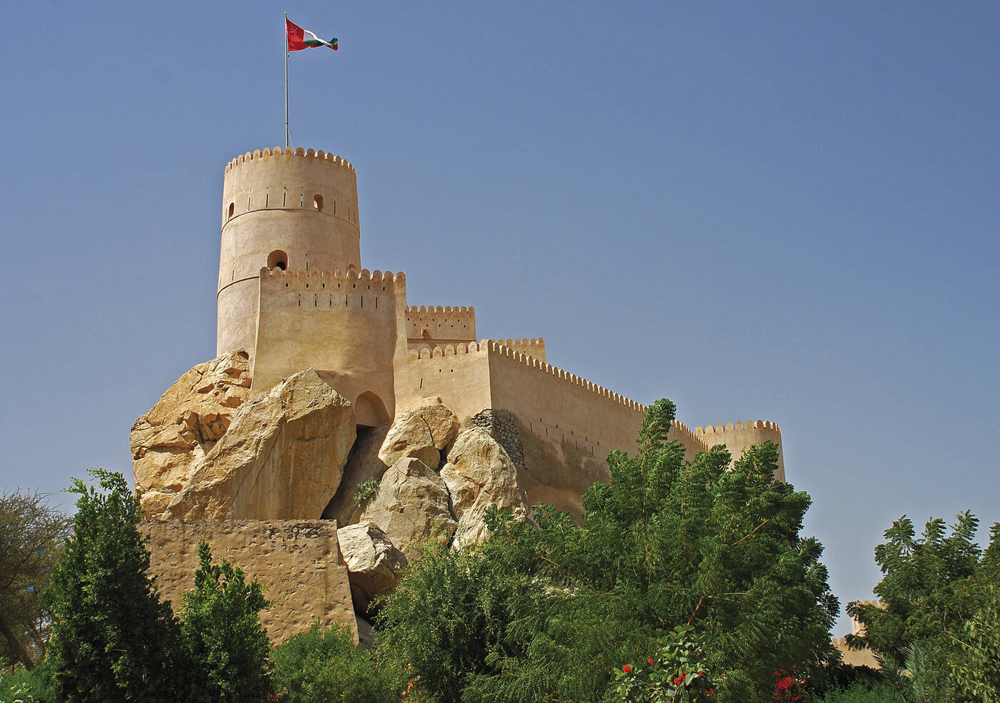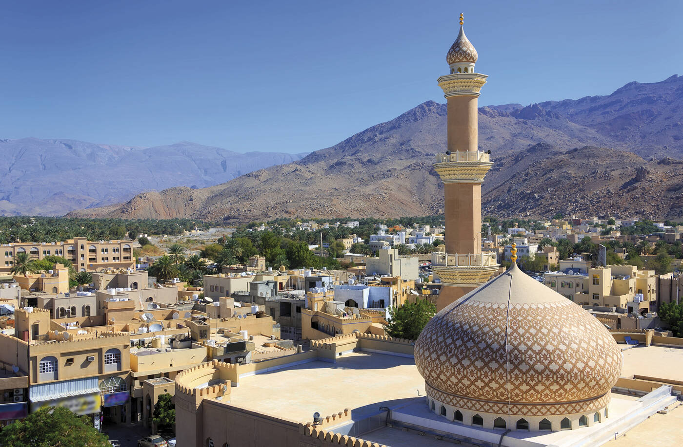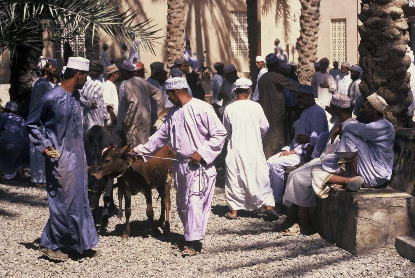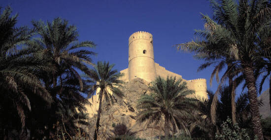 Zunächst fahren wir zur bis zu 1.000 m tiefen Schlucht des „Grand Canyon des Oman“ mit spektakulären Aussichten. In Jabrin besichtigen wir dann den alten Wohnpalast der Imame mit seinen reichen Verzierungen. In Al Hamra schlendern wir durch die Altstadt mit ihren mehrstöckigen Lehmhäusern und können auch eines dieser Häuser (Bait al Safah), das als Museum eingerichtet ist, besichtigen. Bei unserem Gang durch die mittelalterliche Bergoase Misfat Al Abriyeen entdecken wir die Sternenuhr und lernen das Falaj Bewässerungs-System kennen. In Nizwa angekommen bummeln wir durch den Souk, wo der typische Silberschmuck und die reich verzierte Kanjar (typische Krummdolche) bewundert und natürlich auch gekauft werden können. Danach Besuch des Forts mit seinem riesigen, runden Wehrturm wit Blick über Nizwa und die umgebende Landschaft. (170 km)