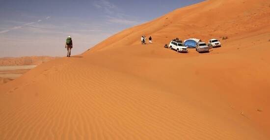- intensives Wüstenerlebnis mit vier Zeltübernachtungen, u.a. im legendären "Leeren Viertel", der größten Sandwüste der Erde, und einer Übernachtung in der Traumwüste Wahiba Sands im Bungalow-Wüstencamp