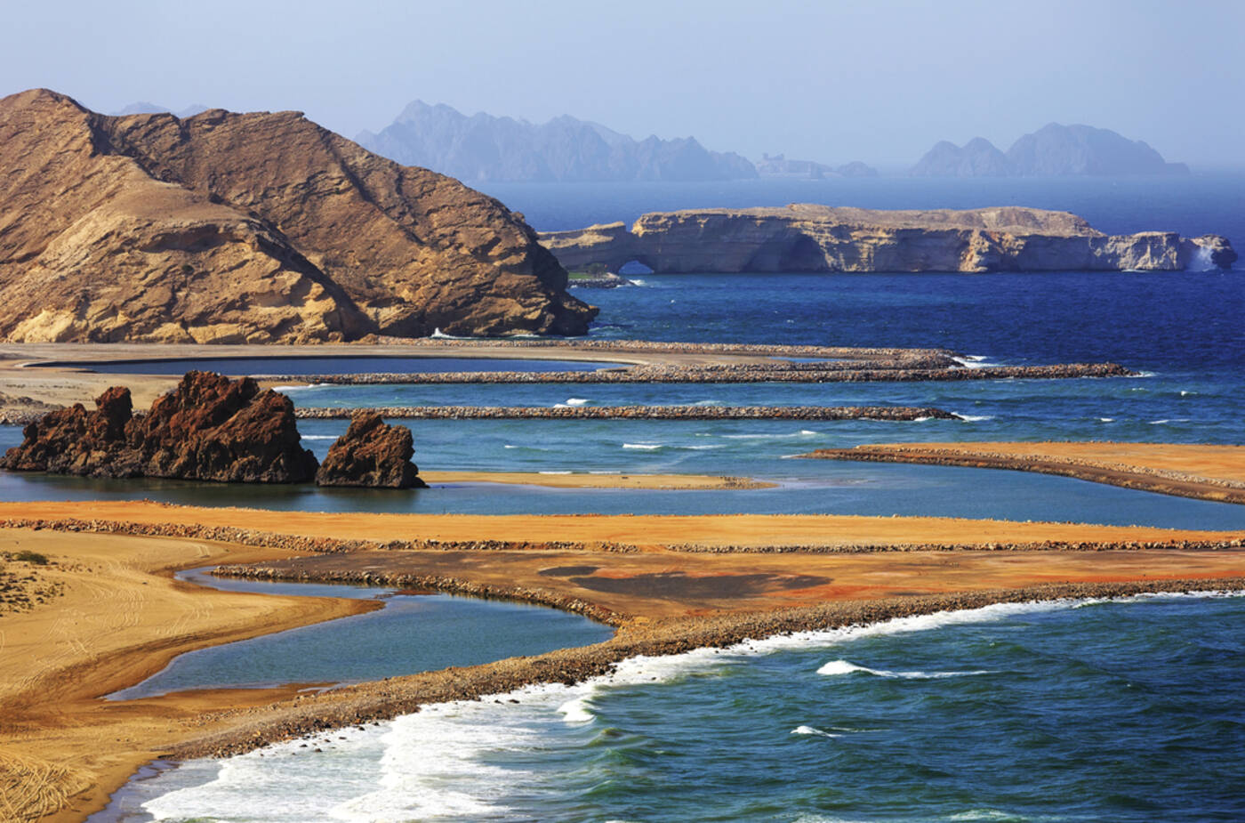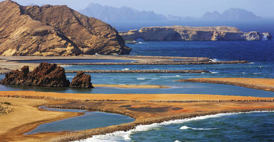 - mit grandioser imposanter Berglandschaft mit bizarren Felsformationen, u.a. dem "Canyon des Oman", dem Jebel Shams. Mit dem sagenumwobenen Weihrauchland Dhofar. Und entlang der endlosen Küste mit ihren malerischen Sandstränden, "Mondlandschaften" und Lagunen