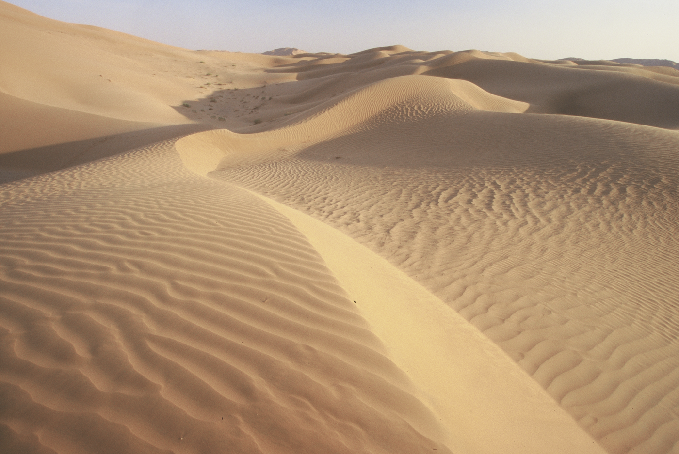 Heute beginnt unsere Wüstenerkundung im „Leere Viertel“, der Rub Al Khali, dem Zentrum der arabischen Halbinsel und der größten Sandwüste der Erde. Wir folgen alten Karawanenwegen und erleben verschiedenste Dünen- und Gesteinsformationen. Wir kommen zügig voran, die Straße ist noch geteert. (480 km)