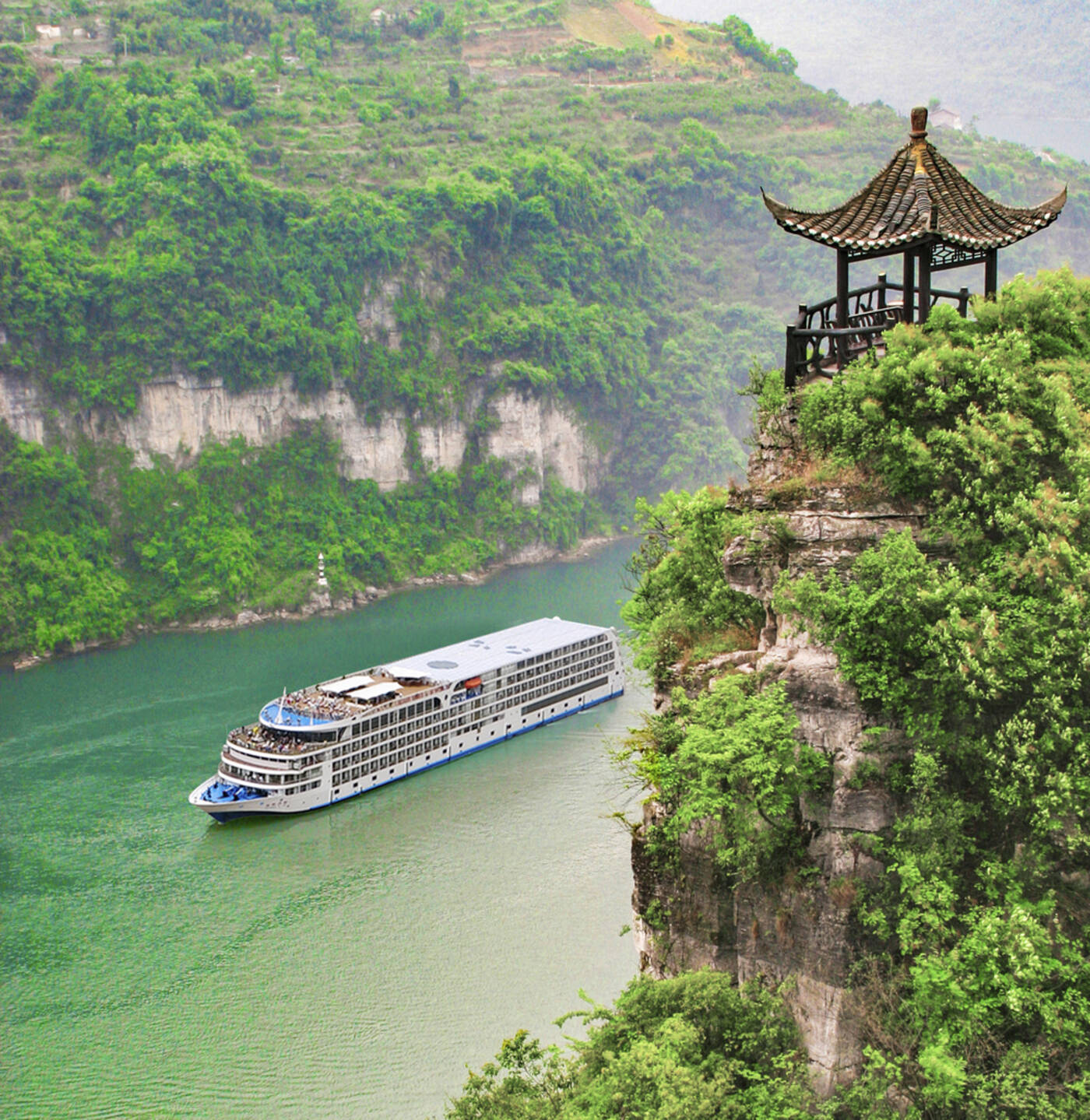 Unsere Kreuzfahrt führt uns heute weiter in die Wu-Schlucht, den malerischsten Abschnitt des Yangtzes. Die Ufer steigen zwar steil an, lassen jedoch Platz für kleine Ansiedlungen, Felder und Obstbaumplantagen. Bei einem Ausflug in einen Nebenfluss des Yangtzes fahren wir mit kleineren Booten entlang bewachsener Felswände flussaufwärts. Später dann passieren wir auch die Qutang-Schlucht, die engste und kürzeste der Drei Schluchten.