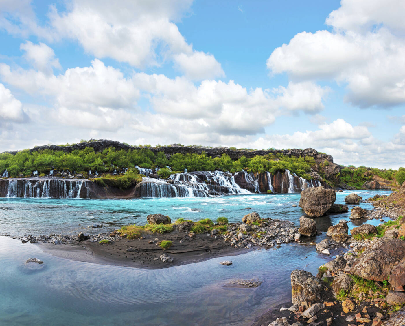 Zunächst kurze Stadtrundfahrt in Akureyri, der Hauptstadt Nordislands. Über die Ringstraße kommen wir in den Skagafjord-Distrikt, bekannt für die Zucht von ausdauernden und robusten Islandpferden, die sich auch in Deutschland großer Beliebtheit erfreuen. Der Borgarfjord-Distrikt besticht nicht allein durch seine grünen Täler und beliebten Lachsflüsse, sondern auch durch die größte Heißwasserquelle Europas, Deildartunguhver. Danach erreichen wir Reykholt, ehemaliger Wohnort des Edda Verfassers Snorri Sturluson, der einer der wichtigsten Literaten und Politiker des Mittelalters war. Unweit von Reykholt, besuchen wir die schönen Lava-Wasserfälle Hraunfossar. Niederschlag und das Wasser eines unterirdischen Flusses strömen hier in unzähligen Rinnsalen aus der Lava in den Gletscherfluss Hvita. Etwas weiter oben im Flusslauf befindet sich der Barnafoss, der „Kinder-Wasserfall“. Je nach Zeiteinteilung durch den Reiseleiter wird ein Teil dieser Besichtigungen auch am Morgen des 7. Tages durchgeführt. Abendessen und Übernachtung im Gebiet Borgarfjord (Tagesdistanz ca. 410 km).