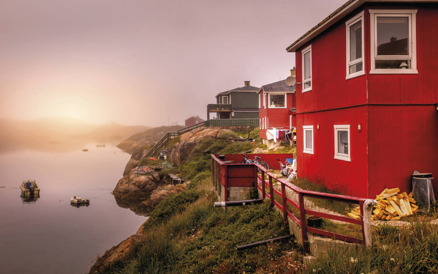 Sisimiut liegt etwa 54 Kilometer nördlich des Polarkreises, sodass man hier im Sommer die Mitternachtssonne erleben kann. Die Stadt ist berühmt für die alte blaue Kirche mit dem Tor aus Walknochen. In dem gemütlichen Museum neben der Kirche finden wir eine hervorragende Rekonstruktion eines Inuit-Torfhauses sowie Exponate zur lokalen Geschichte und zum frühen Leben in Grönland.