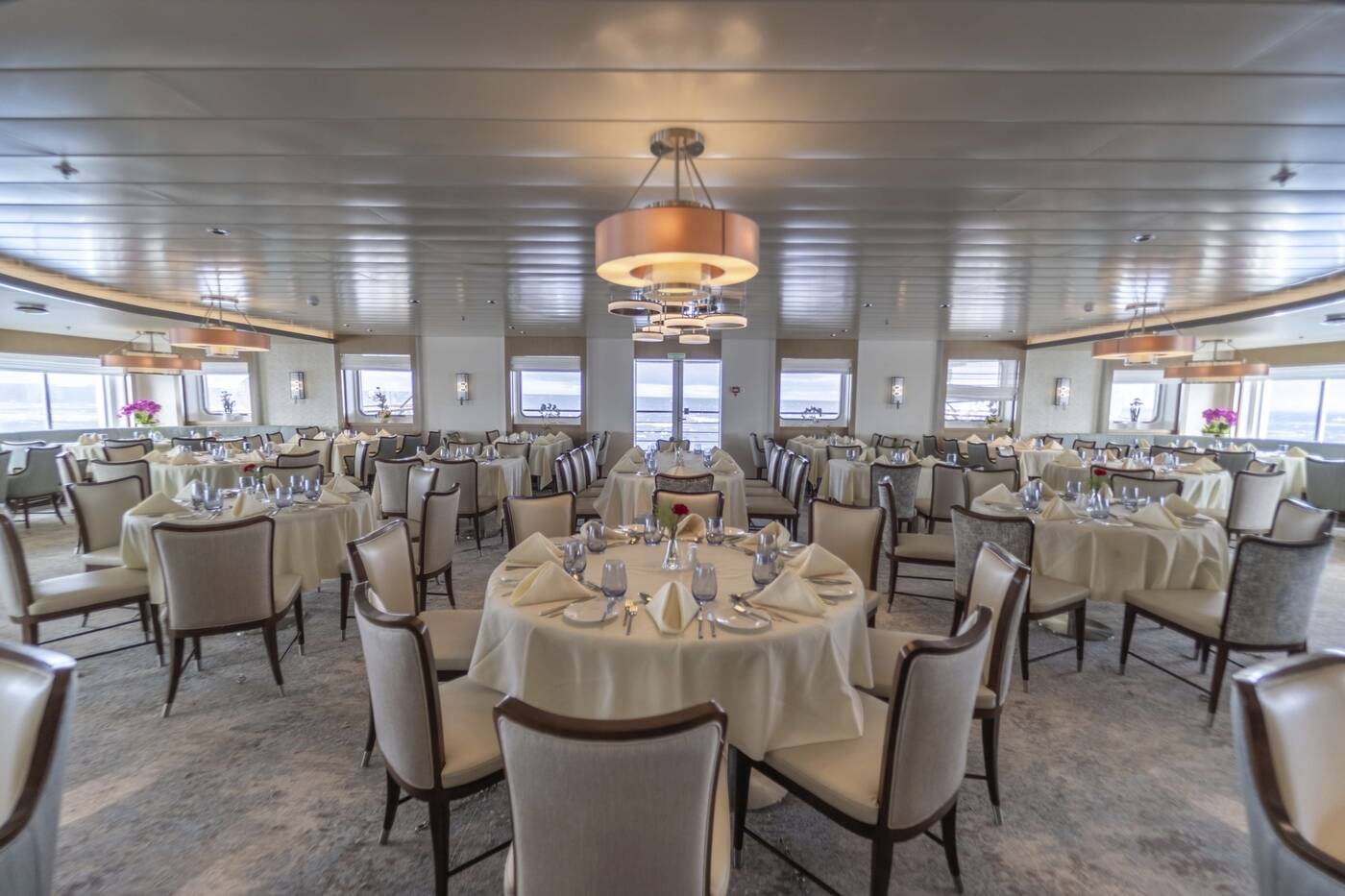 Minibar gegen Gebühr außer in Kat. G und H. In Kat. G und H zusätzlich ein kostenloses Fernglas pro Suite, eine kostenlose Flasche Sekt pro Suite, Trinkgeld in Höhe von 15 US Dollar pro Person pro Tag für die Besatzung inkludiert