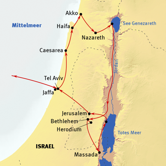 - mit den Hauptsehenswürdigkeiten einer Israel-Reise, aber zusätzlich auch Besuch im palästinensischen Bethlehem