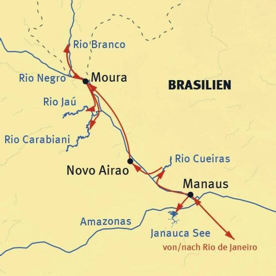 - sechstägige Bootsfahrt auf dem Amazonas und Rio Negro