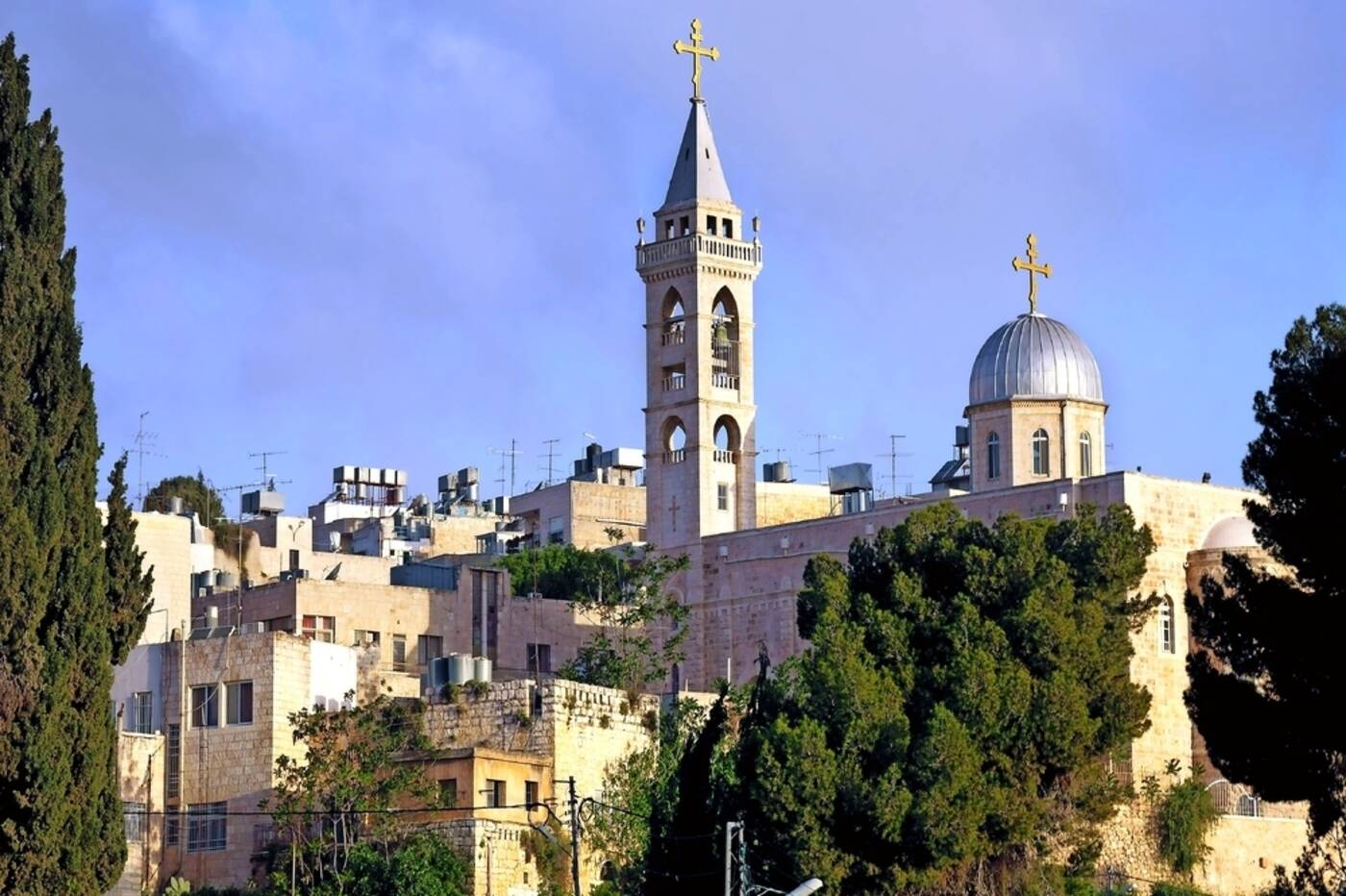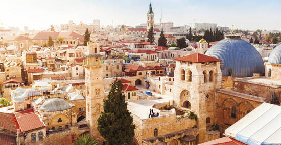 Nach dem Frühstück fahren wir zum Ölberg mit schönem Blick über die Stadt. Über den Palmsonntagsweg steigen wir dann hinab zum Garten von Gethsemane mit seinen Jahrhunderte alten Olivenbäumen und der Kirche aller Nationen. Durch das Löwentor geht es dann in die Altstadt und auf der Via Dolorosa entlang der Stationen des Kreuzweges bis zur Grabeskirche, die wir besichtigen. Über den arabischen Basar laufen wir dann ins jüdische Viertel, vorbei am Cardo, der antiken Einkaufsstraße. Danach sehen wir die Klagemauer, die wichtigste religiöse Stätte des Judentums, unterhalb des vom monumentalen Felsendom und der Al-Aqsa-Moschee beherrschten Tempelbergs, und besuchen eine Synagoge. Zum Abschluss treffen wir einen Israeli, welcher in Jerusalem lebt und seine Sicht der Dinge erzählt und gerne Fragen zum Leben in Israel beantwortet.