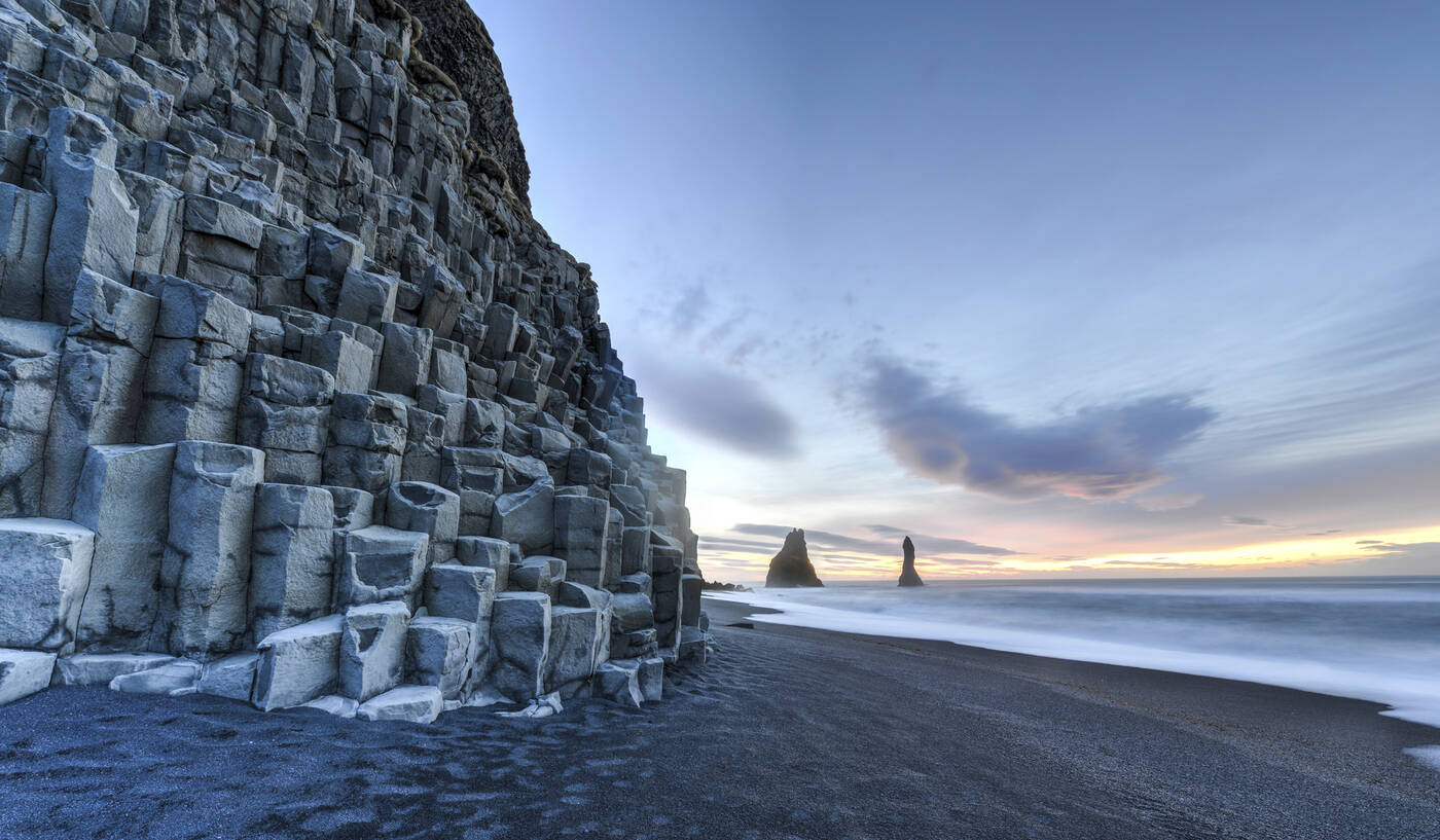 Weiter entlang der Südküste gelangen wir zum malerischen Wasserfall Seljalandsfoss, der über einen Felsvorsprung in die Tiefe stürzt. Nach nur kurzer Fahrt erreichen wir den bekannten Skógafoss, ein mächtiger Wasserfall, der ca. 60 Meter hoch und ein beliebtes Postkartenmotiv ist. Wir statten dem Freilichtmuseum Skogar einen Besuch ab. An der Südspitze Islands sind die schwarzen Lavastrände nahe Vik unser nächstes Ziel. Die gewaltige Brandung des Atlantiks auf den schwarzen Sandstrand ist beeindruckend. und am anderen Ende des Strandes sehen wir das Kap Dyrholaey, ein riesiges Felstor und Wahrzeichen der Südküste. Tagesziel ist die Gegend um die Ortschaft Kirkjubaejarklaustur. Abendessen und Übernachtung in der Umgebung von Kirkjubaejarklaustur.