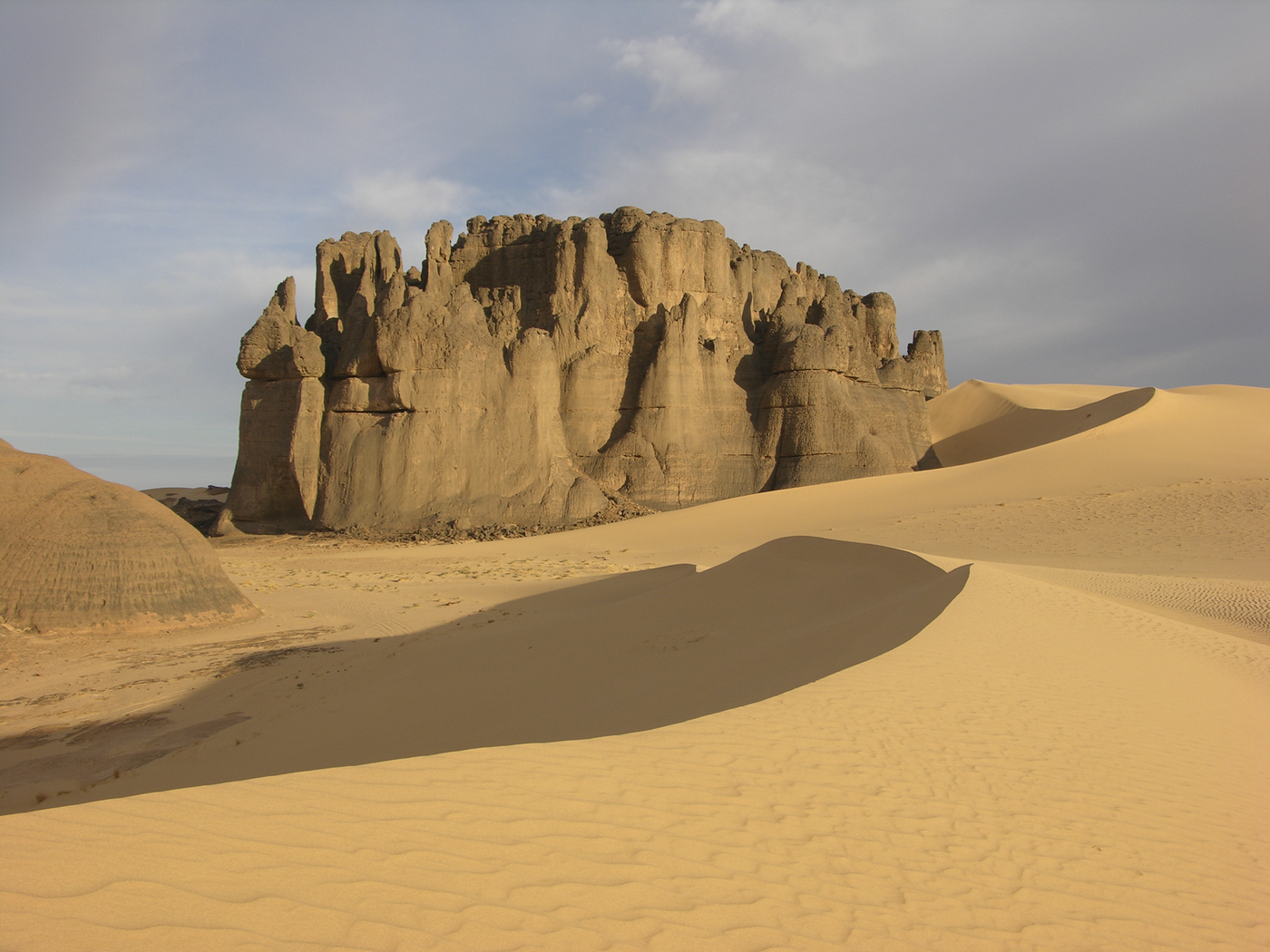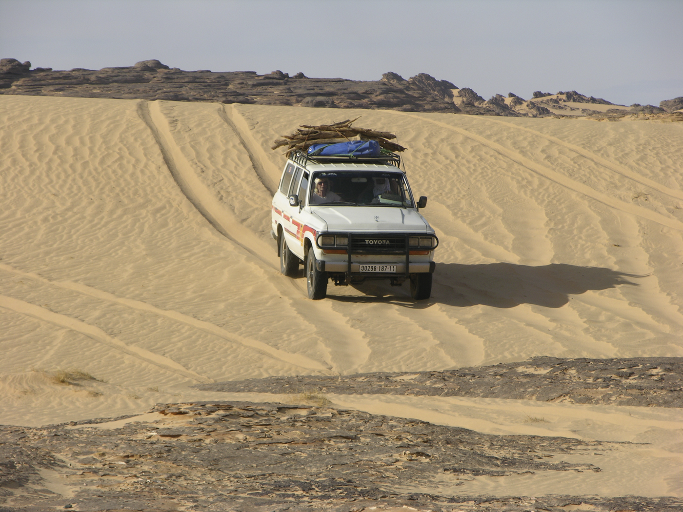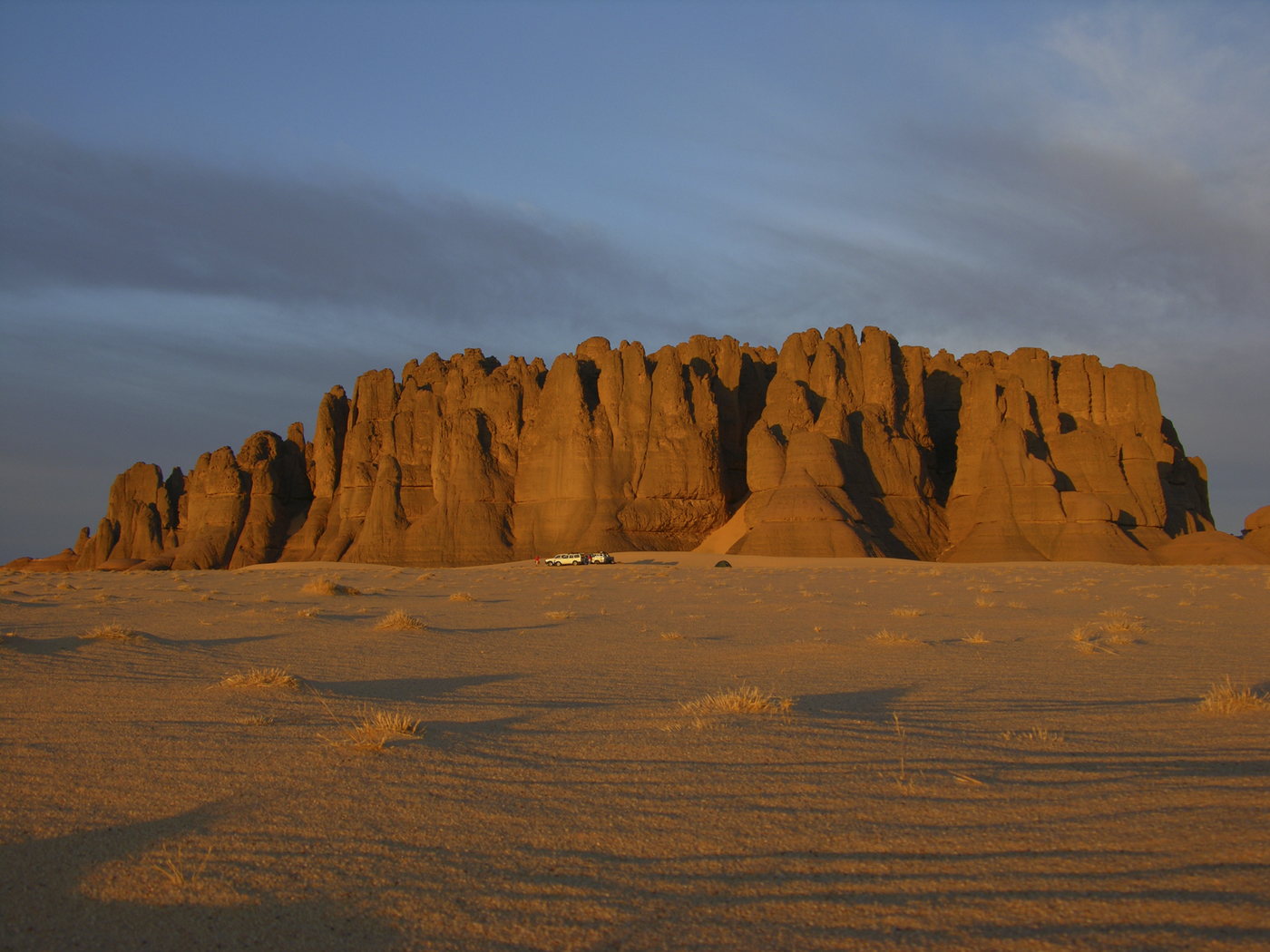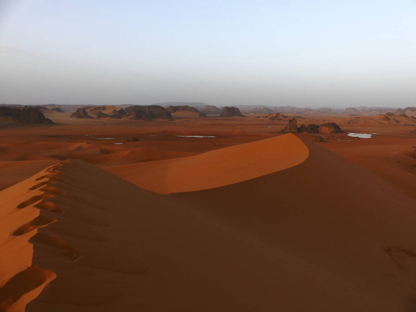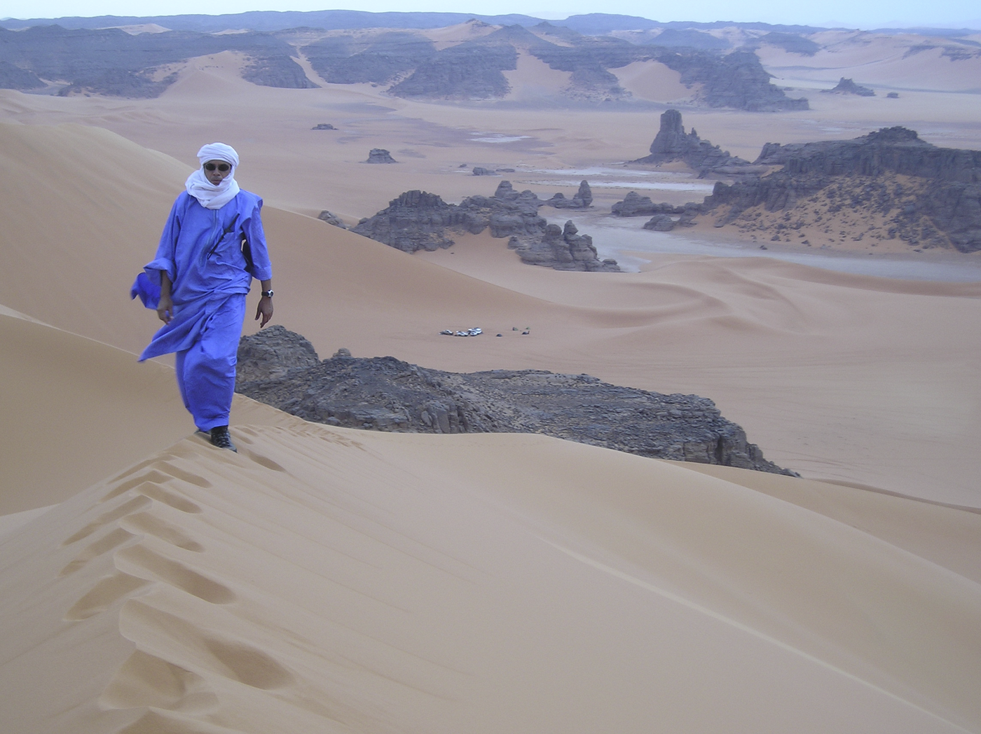Heute halten wir uns den ganzen Tag inmitten des Dünenmeeres des Erg Admer auf. Die Dünenketten und -kessel erstrecken sich über Hunderte von Kilometern. Eine abenteuerliche Fahrt - hier zeigt sich das wahre Können unserer erfahrenen Touareg-Mannschaft. Riesige Dünenkolosse begleiten uns rundum. Nach dem Mittagessen Möglichkeit einer kleinen Dünenwanderung. Wer will, kann sich auch eine schöne Düne in der Nähe aussuchen, die Stille genießen und einfach die Seele baumeln lassen oder fotografieren. Zur Übernachtung kehren wir zurück nach Djanet.