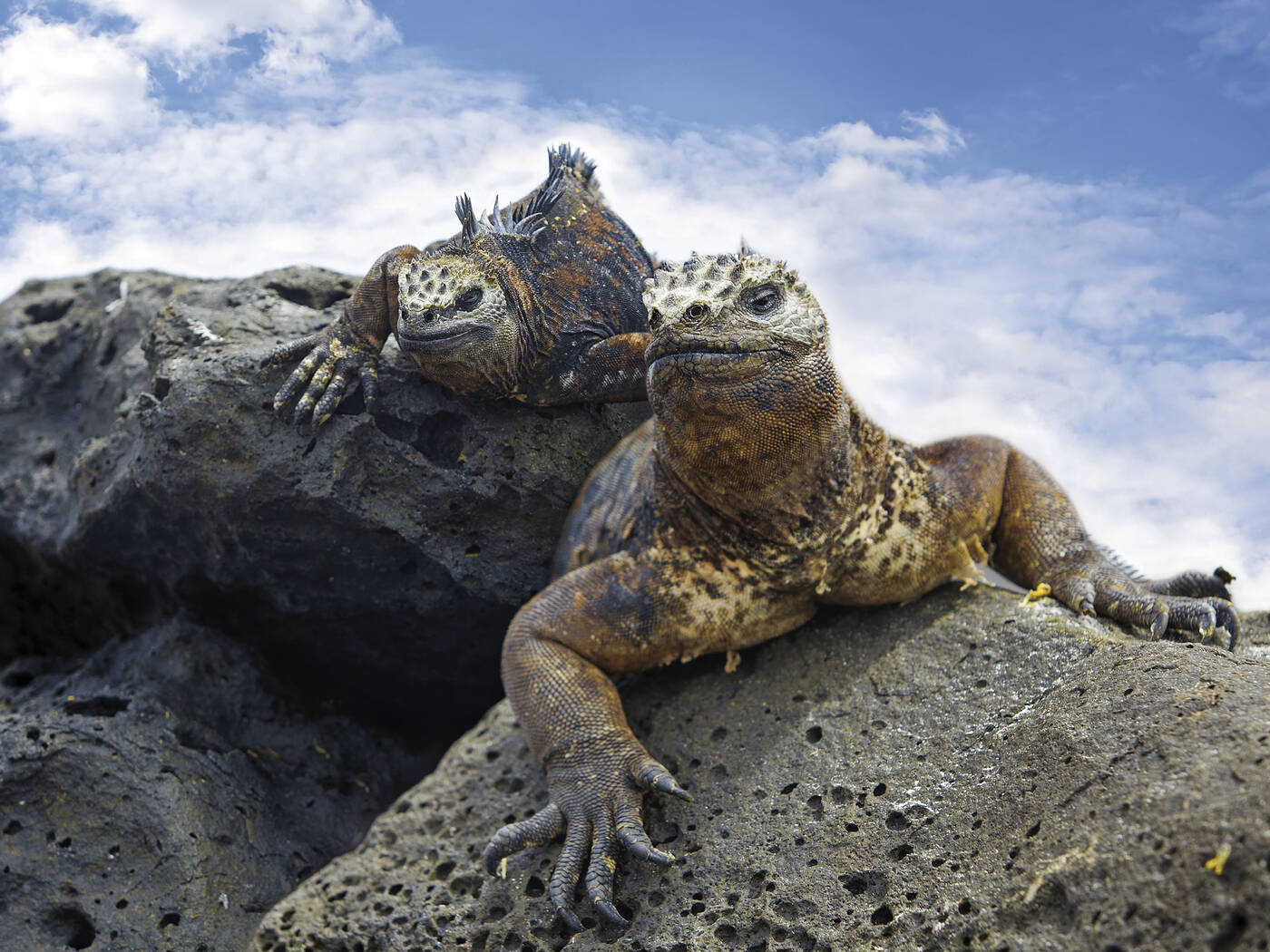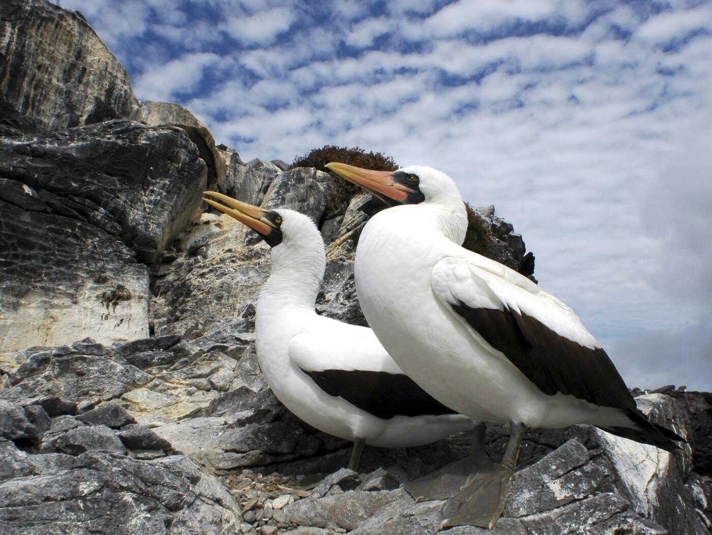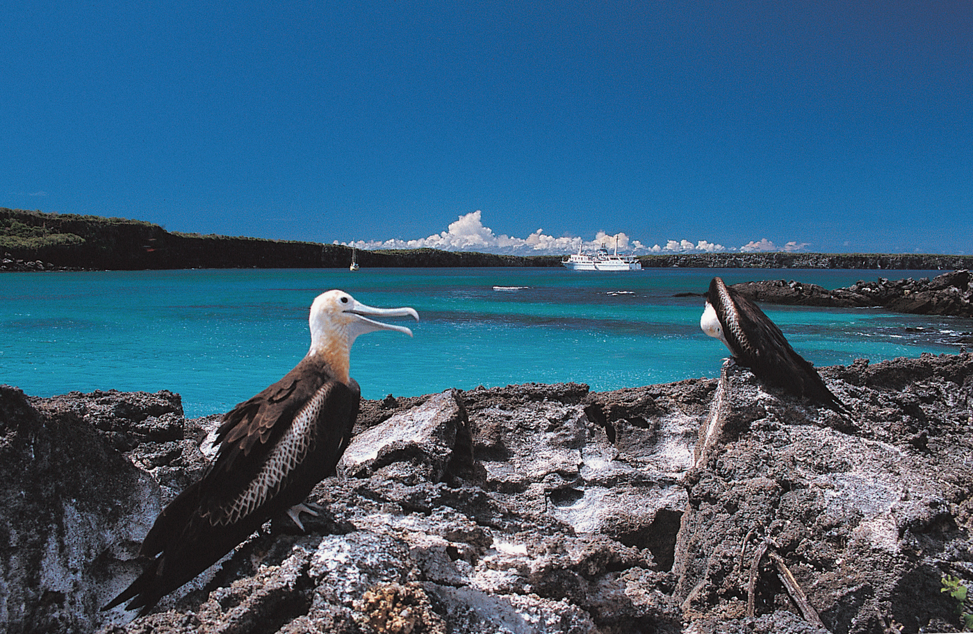 Flug von Quito nach Baltra (Galápagos). Kurze Fahrt zur Pier und Einschiffung auf der TIP TOP II. Erste Informationen während der Fahrt zum Inselchen Mosquaera, einem Riff aus Felsen und Korallen mit großem weißen Sandstrand. Wir können hier u. a. Seelöwen-Kolonien und braune Pelikane beobachten und haben noch Zeit zum Schwimmen und Schnorcheln. Abends ein Vortrag über die Galapagos-Inseln.