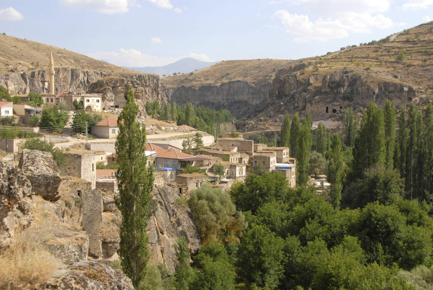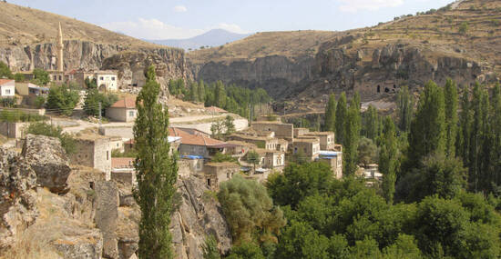 Nach einer kurzen Fahrt gelangen wir ins Hochland nach Güzelyurt. Ca. vierstündige, leicht fordernde Wanderung durch den Ilhara-Canyon, eine tief eingeschnittene Schlucht mit vielfältiger Vegetation und vielen Ruinen und Höhlenkirchen der byzantinischen Epoche wie der Kokar Kilise (wohlriechende Kirche), der Agalcalti Kilise (Kirche unter dem Baum) und der Yilanli Kilise (Schlangenkirche). (110 Höhenmeter)