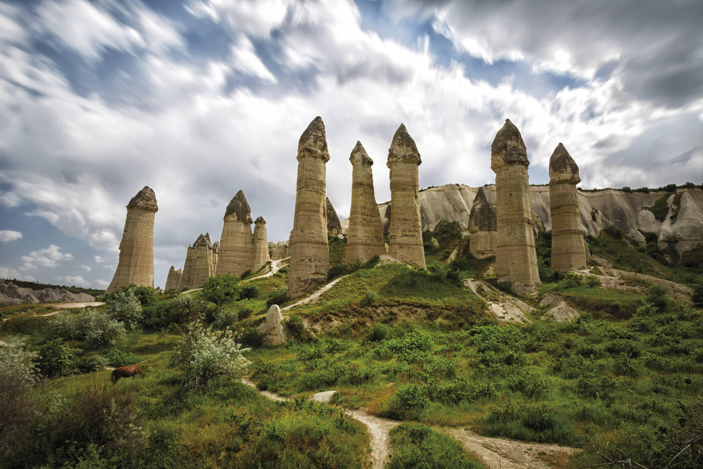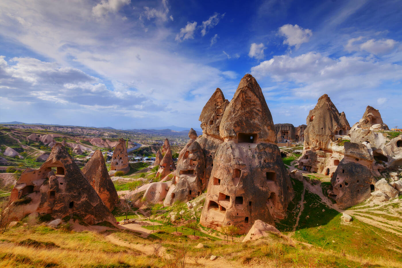 Kappadokien, ein Teil des inneranatolischen Hochlandes, ist von allen Seiten von Bergen umgeben. Dazwischen liegt eine Landschaft von wundervoller Schönheit, die dem Wanderer und Naturfreund eine Fülle herrlicher Erlebnisse bietet. Das antike Kappadokien reichte vom Schwarzen Meer bis zum Taurusgebirge im Süden, vom Euphrat im Osten bis zu den Salzseen im Westen. Zu Recht wird das heutige Kappadokien als Weltwunderwerk der Natur bezeichnet: Bizarre Felsformationen, einzigartige Tufflandschaften mit unterirdischen Städten und zahlreichen Felsenkirchen lassen Gedanken an eine unwirkliche Mondlandschaft entstehen. Viele der einzigartigen Feenkamine, die charakteristischen Pyramiden Kappadokiens, sind als Folge heftiger Eruptionen von heute erloschenen Vulkanen entstanden, wobei sich die Asche in Schichten mit verschiedenen Farben und Formen ablagerte. Die Tuffschichten wurden im Laufe der Zeit ausgewaschen und ließen Wasserrinnen und tiefe Schluchten entstehen. Aber auch die einzigartige Ansammlung altchristlicher Kirchen und Klöster ist eine der größten Attraktionen des Landes. Eigentlich ist Kappadokien heute immer noch eine Art „Geheimtipp“ im Herzen der Türkei.