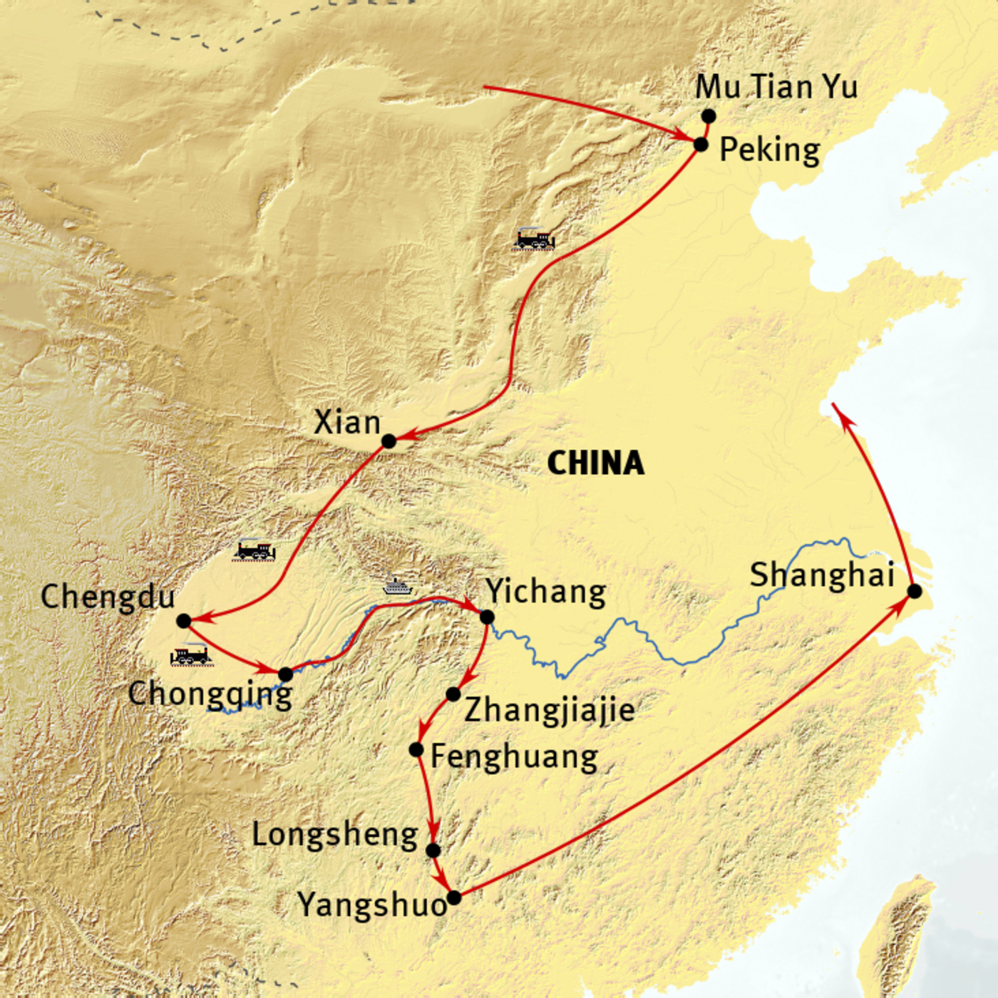 Peking - Xian - Chengdu - Chongqing - Yangtze-Kreuzfahrt - Zhangjiajie - Fenghuang - Longsheng (Ping´An) - Yangshuo - Shanghai