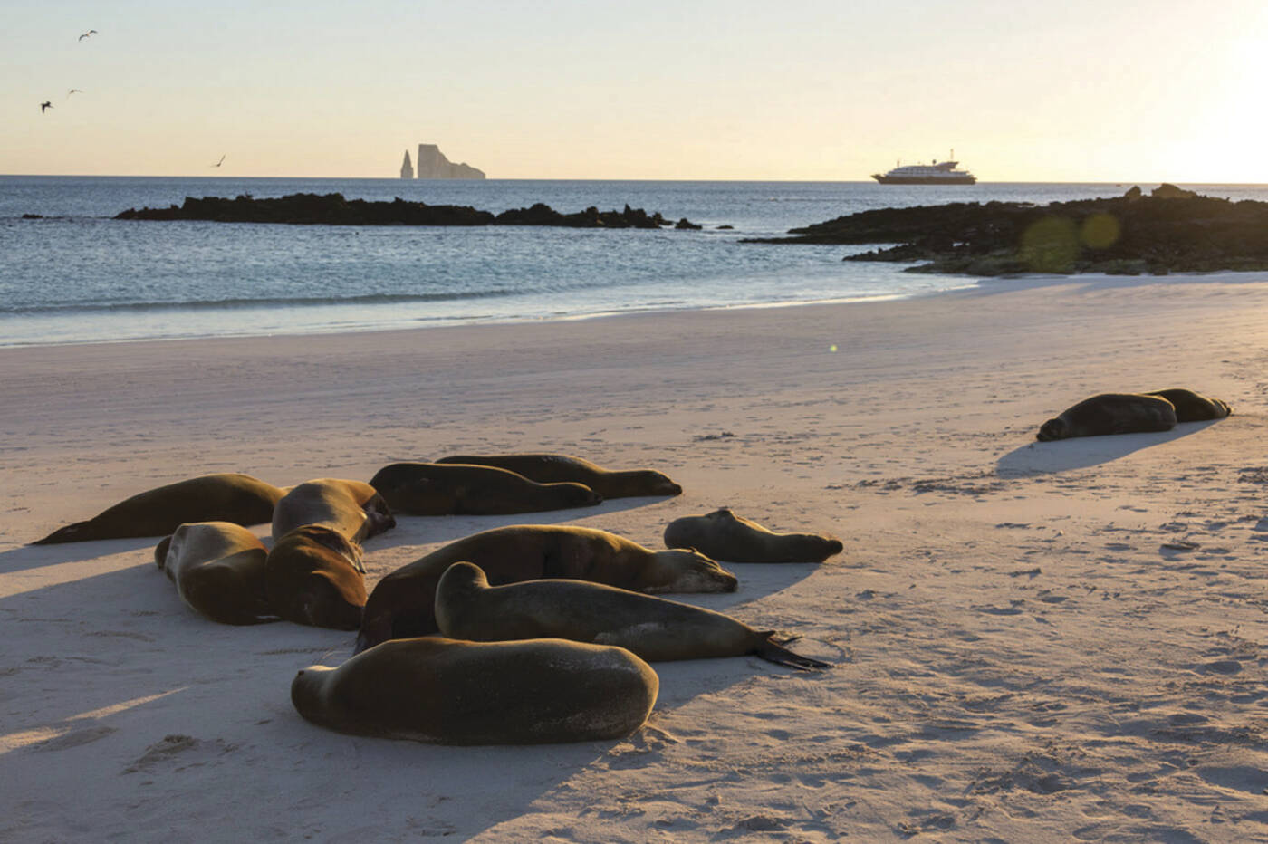 Vormittags Ausflug zur Lobería mit einer Seelöwenkolonie und Schnorchelmöglichkeit, immer auf der Suche nach Meeresschildkröten, Mantas, Meerechsen und einer Vielzahl von bunten Korallenfischen. Nachmittags Überfahrt zur größten Galápagos-Insel Isabela. Anschl. Zeit für einen Strandspaziergang.