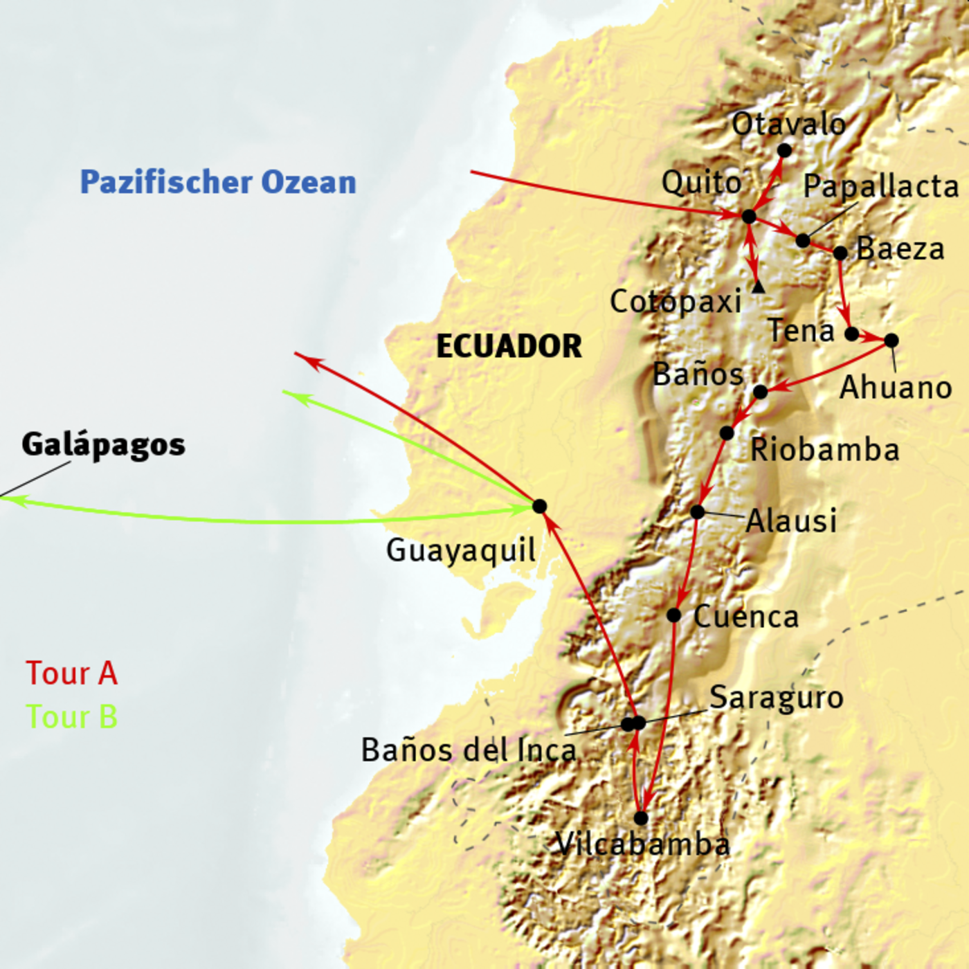 - durchgehende Reiseleitung bei Tour A ab Quito / bis Guayaquil