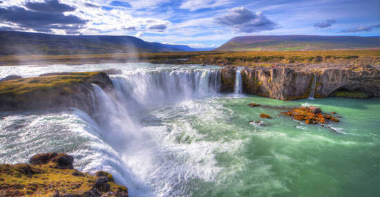 Vorbei am Godafoss, dem Wasserfall der Götter, geht es nach Akureyri. Wir statten der Hauptstadt des Nordens einen kurzen Besuch ab, bevor es in den Skagafjord geht, der als Hochburg der isländischen Pferdezucht gilt. Besuch eines Heimatmuseums, in dem das Leben der Isländer in vergangenen Zeiten veranschaulicht wird. Es erwartet uns eine Vorführung des reinrassigen Islandpferdes (Tagesdistanz ca. 270 km).