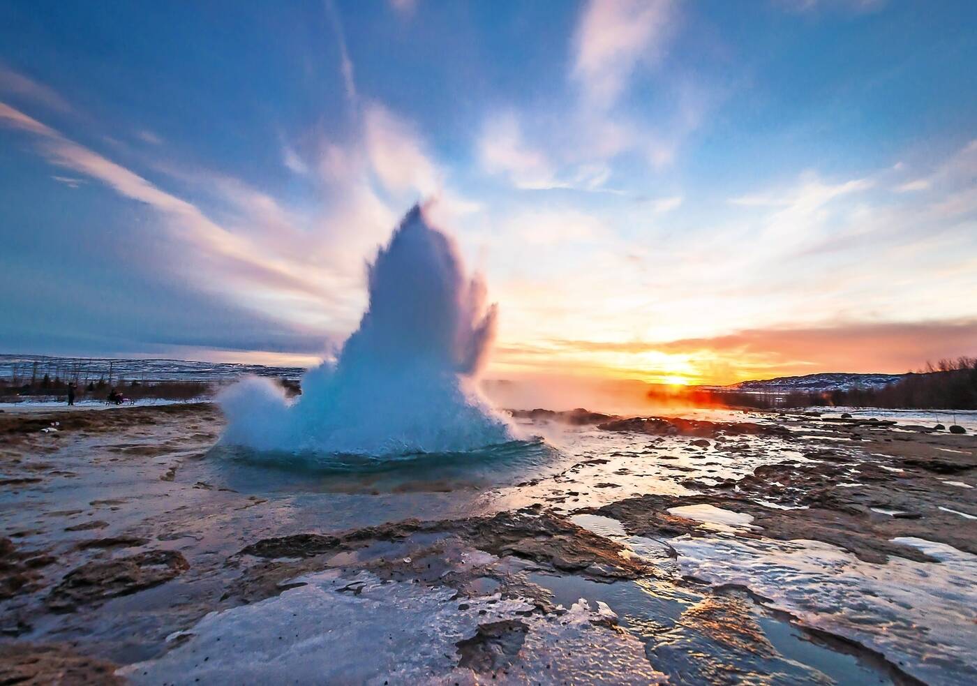 Das Abenteuer Hochland wartet: Beim Tal Blöndudalur zweigen wir ab auf die karge Hochlandpiste Kjölur. Unterwegs Bademöglichkeit im Thermalgebiet Hveravellir. Im Süden erleben wir den "Goldenen Wasserfall" Gullfoss. Über zwei Fallstufen stürzt das Gletscherwasser der Hvita in eine tiefe Schlucht. Sensationell wird der anschließende Besuch der heißen Quellen im Haukadalur-Tal. Der Geysir Strokkur beherrscht das Bild und lädt mit auffallender Pünktlichkeit etwa alle 8 Minuten zum Fototermin ein, wenn er seine gewaltige Fontäne aus Wasser und Dampf in die Luft schleudert (Tagesdistanz ca. 310 km).