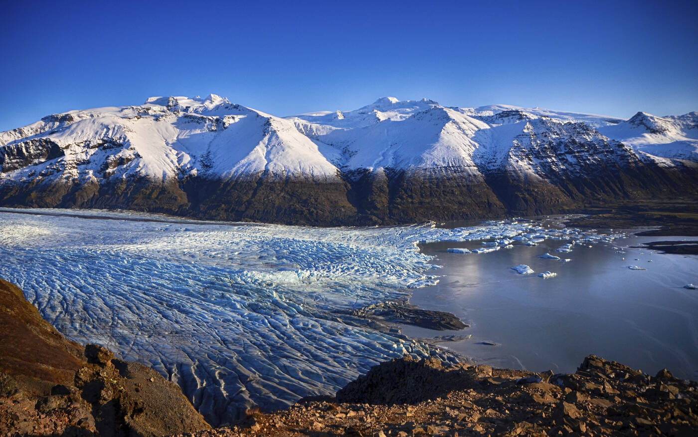 Der heutige Tag ist dem zwischen großen Gletscherzungen gelegenen Nationalpark Skaftafell gewidmet, der zu schönen Spaziergängen und kleinen Wanderungen einlädt. Am Fuße des mächtigen Vatnajökull unternehmen wir eine Bootsfahrt auf der Gletscherlagune Jökulsárlón mit schwimmenden Eisbergen (Tagesdistanz ca. 200 km).