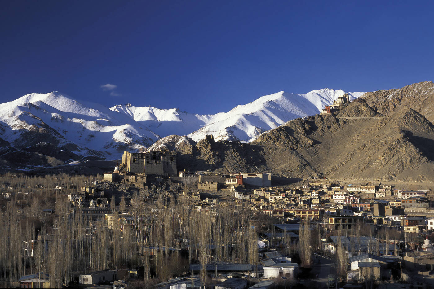 Nach unserem Frühstück starten wir mit Besichtigungen in Leh und Umgebung. Dabei besuchen wir das Schwesternkloster Sankar und den Stupa von Tissero, die Burgruine oberhalb von Leh und die Palastanlage, die nach dem Vorbild des Potala in Lhasa errichtet wurde. Am Nachmittag besuchen wir das Womens Alliance Centre (vorbehaltlich Öffnungszeiten), Shanti Stupa und Chanspa Chorten. Wir runden den Tag mit einem Bummel über den Basar ab.