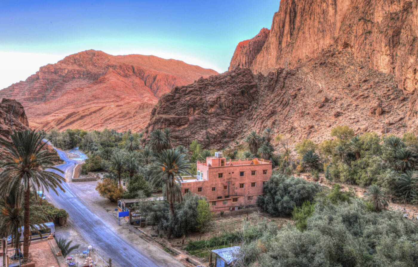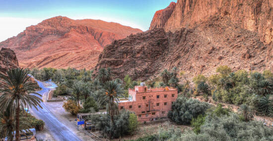 Sonnenaufgang in den Dünen für Frühaufsteher. Nach dem Frühstück Rückfahrt im Geländewagen nach Merzouga, von hier geht es im Bus entlang der landschaftlich schönen Straße der Kasbahs nach Skoura. Unterwegs Stopp in der canyonartigen Todgha-Schlucht und der Oase Kelaa Mgouna. (350 km, 6 Std)