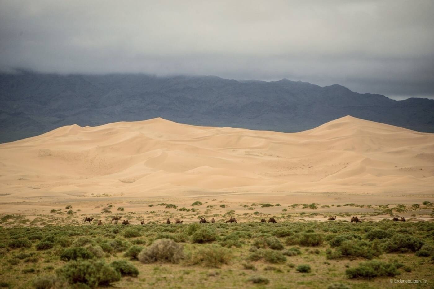 Uns erwartet ein besonderes Naturphänomen: die Hongor Sanddünen, die in der Mongolei als die berühmten singenden Dünen bekannt ist. Diese beeindruckenden Dünen zählen zu den größten des Landes und faszinieren durch das geheimnisvolle, tiefe Brummen, das der Wind durch den feinen Sand erzeugt. Gemeinsam erkunden wir die Dünenlandschaft und haben die Gelegenheit, eine der mächtigen Sandberge zu besteigen. Von oben genießen wir einen atemberaubenden Blick über die weitläufige Wüste und die umliegenden Hügel. Am Abend erwartet uns ein besonders authentisches Erlebnis: Wir besuchen eine Nomadenfamilie, die in ihren traditionellen Jurten lebt. Hier lernen wir den Alltag der Nomaden kennen, erleben ihre herzliche Gastfreundschaft und bekommen die Gelegenheit, traditionell zubereitete Milchprodukte zu probieren – eine kulinarische Entdeckung, die tief mit der Lebensweise der Nomaden verbunden ist. (Tagesetappe 180 km)