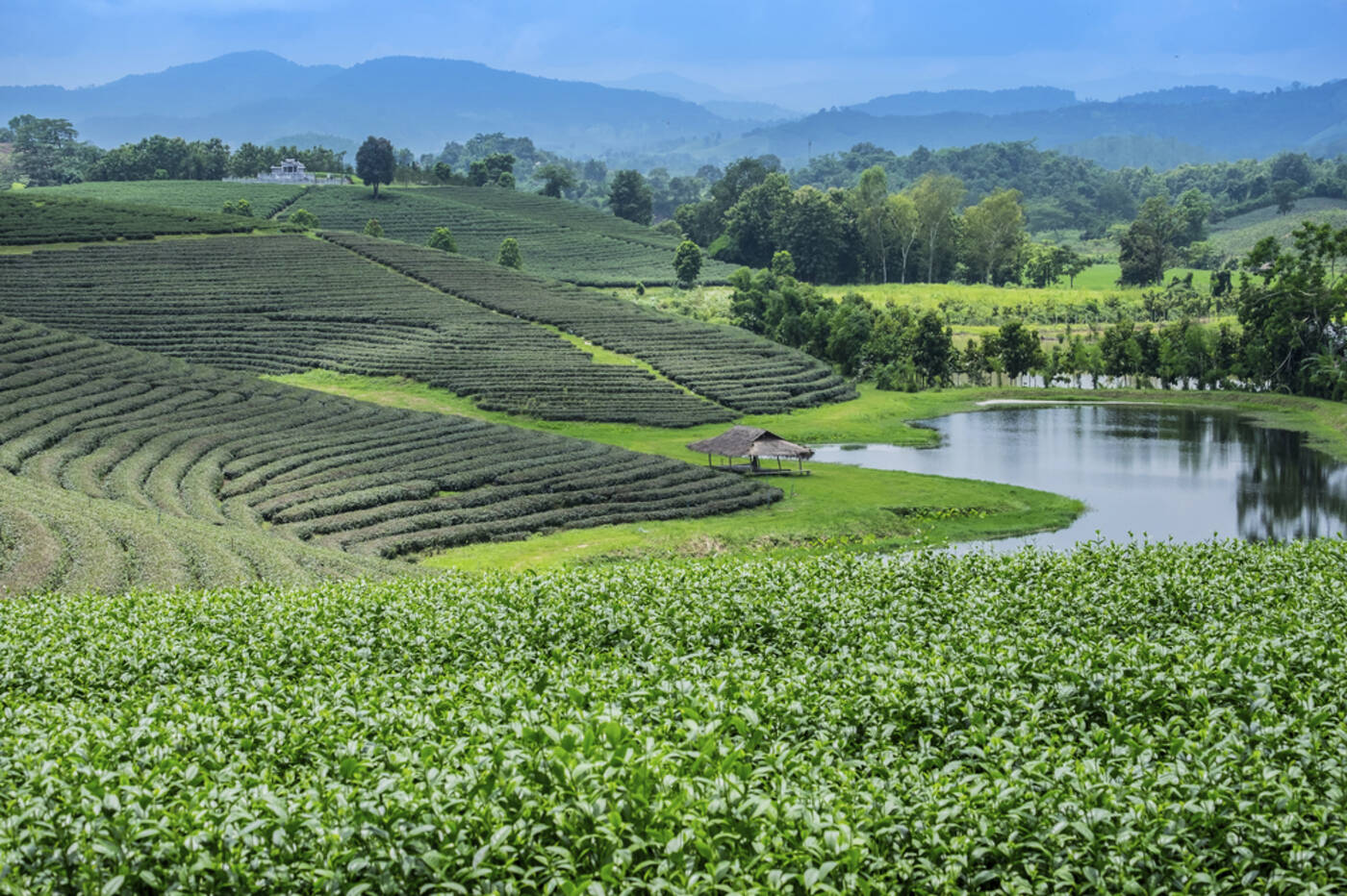 Am Vormittag setzen wir unsere Reise fort und fahren nordwärts durch eine abwechslungsreiche Landschaft. Links und rechts der Straße begleiten uns Reisfelder, Obstplantagen, Gemüsegärten und Teakholzwälder, mit Blick auf den imposanten Doi Chiang Dao, Thailands dritthöchsten Berg. Unterwegs halten wir auf dem lokalen Markt von Huey Luek, wo im Rahmen eines königlichen Entwicklungsprojekts regionale Produkte wie Gemüse, Früchte und Blumen angebaut und verkauft werden. Kurz vor Chiang Rai erreichen wir die malerische Choui Fong Teefarm. Die weitläufigen, sanft geschwungenen Felder mit leuchtend grünem Teebewuchs bieten nicht nur fantastische Fotomotive, sondern auch Gelegenheit zur Verkostung verschiedener Teesorten. Im Teeshop genießen wir die entspannte Atmosphäre mit Panoramablick über die Plantage. Am Nachmittag erreichen wir Chiang Rai, die nördlichste Provinzhauptstadt Thailands, eingebettet in die sanfte Hügellandschaft des Goldenen Dreiecks.