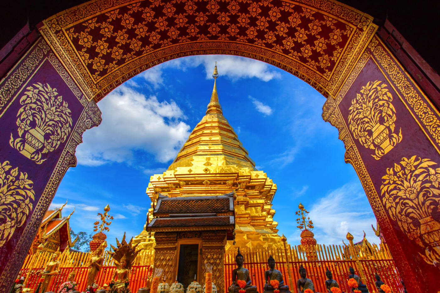 Heute erkunden wir Chiang Mai – eine Stadt mit stolzer Geschichte, deren Wurzeln bis ins Jahr 1296 zurückreichen. Einst Hauptstadt des unabhängigen Königreichs Lanna, dem „Land der Millionen Reisfelder“, war sie über Jahrhunderte kulturelles und politisches Zentrum Nordthailands. Innerhalb der historischen Stadtmauern besuchen wir bedeutende Tempelanlagen wie den Wat Chedi Luang, einen über 600 Jahre alten Stufentempel, dessen Architektur an den berühmten Tempel im indischen Bodh Gaya erinnert, sowie den zentral gelegenen Wat Phra Singh, ein Meisterwerk der klassischen Lanna-Baukunst. Anschließend tauchen wir auf dem Warorot Markt im chinesischen Viertel in das authentische Alltagsleben ein. Zwischen bunten Ständen entdecken wir eine Vielfalt an frischen Lebensmitteln, Gewürzen, Kleidung, Blumen und Goldschmuck – ein Erlebnis für alle Sinne.
