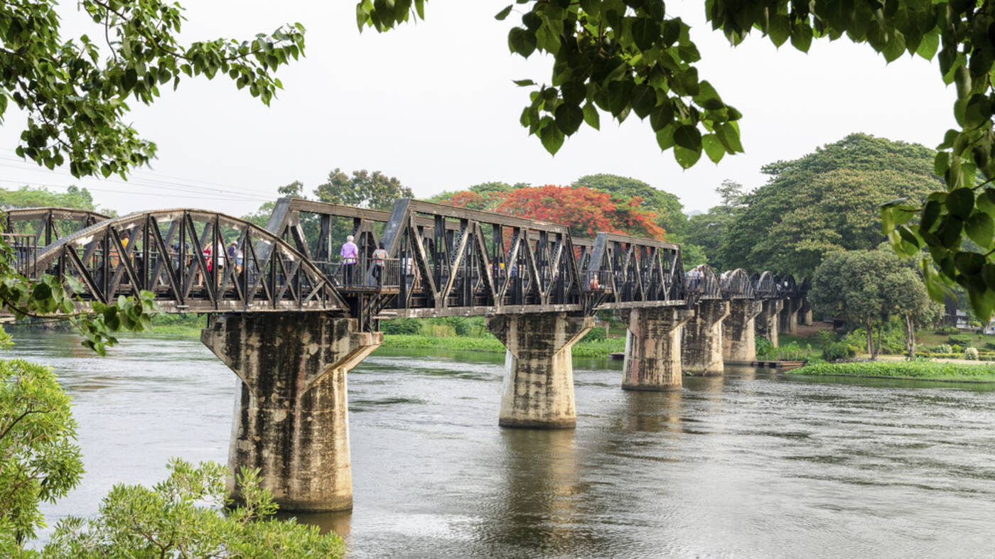 Heute widmen wir uns der bewegten Geschichte von Kanchanaburi, Schauplatz eines der bekanntesten Kapitel des Zweiten Weltkriegs in Südostasien. Die Region wurde durch den Bau der Thailand-Burma-Eisenbahn bekannt, errichtet unter extremen Bedingungen von alliierten Kriegsgefangenen und asiatischen Zwangsarbeitern. Kein Besuch ist vollständig ohne eine Fahrt mit der historischen „Todesbahn“, deren Gleise sich dramatisch an steilen Felswänden entlang schlängeln und über ächzende Holzviadukte führen. Die Bahnstrecke bietet nicht nur beeindruckende Landschaftseindrücke, sondern auch eindringliche Zeugnisse der Geschichte. Im Anschluss besuchen wir das Hellfire-Pass-Museum, das eindrucksvoll über die menschenverachtenden Bedingungen während des Eisenbahnbaus informiert. Der Name „Hellfire Pass“ geht auf die nächtlichen Arbeiten zurück, bei denen das Licht der Fackeln und die Schatten der ausgezehrten Gefangenen eine gespenstische Szenerie schufen. Am Nachmittag Rückfahrt nach Kanchanaburi mit einem abschließenden Stopp an der weltberühmten Brücke über den River Kwai, die durch den gleichnamigen Film internationale Bekanntheit erlangte. Zwar wurde die ursprüngliche Brücke 1945 zerstört, doch sie wurde später wieder aufgebaut und ist heute ein bedeutendes Mahnmal und Touristenmagnet.