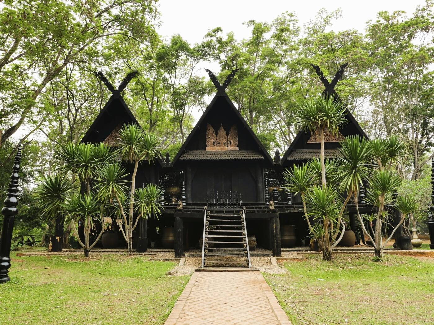 Auf dem Rückweg nach Chiang Rai machen wir Halt beim „Schwarzen Haus“ (Baan Dam) – ein faszinierendes Kunstensemble des thailändischen Künstlers Thawan Duchanee, das traditionelle
