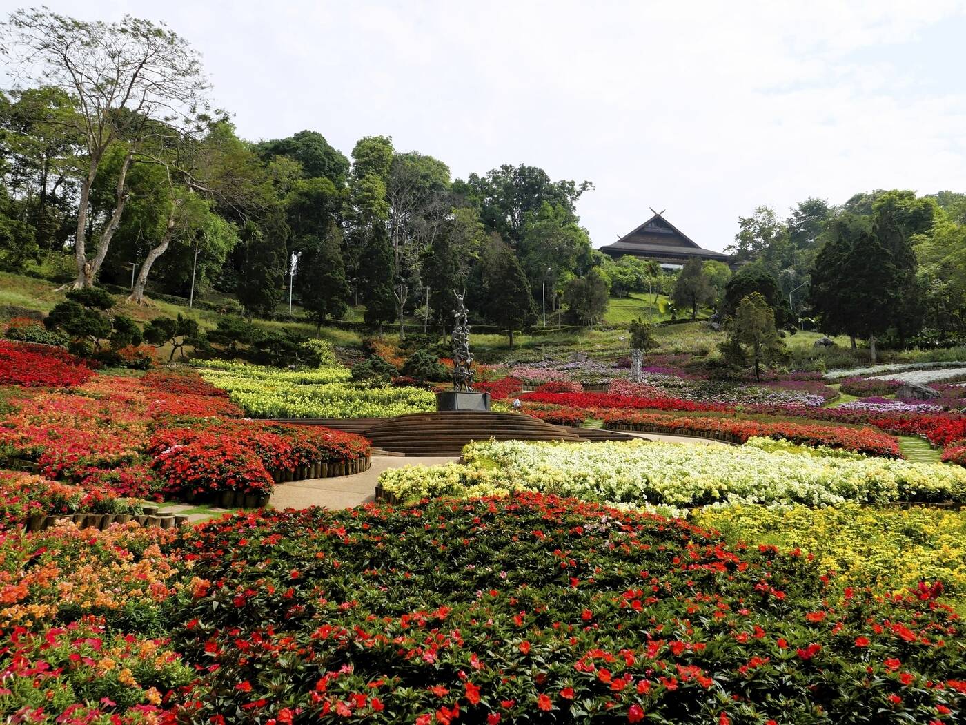 Ein abwechslungsreicher Tag liegt vor uns: Am Vormittag fahren wir zum legendären Goldenen Dreieck, wo Thailand, Myanmar und Laos aufeinandertreffen. In einem kleinen Museum erfahren wir mehr über die bewegte Geschichte dieser Region – einst Zentrum des Opiumhandels – und ihre Rolle im globalen Drogenhandel. Eine kurze Bootsfahrt auf dem Mekong eröffnet den Blick auf das „neue“ Goldene Dreieck, wo heute große Kasinos auf der laotischen Seite neue Realitäten schaffen. Anschließend geht es hinauf zum Doi Tung, einem Berg mit besonderer Geschichte: Durch die Initiative der Königsmutter wurde hier das Leben der Bergvölker nachhaltig verbessert – mit Bildungsprojekten und Alternativen zum Opiumanbau. Wir besichtigen ihre im Schweizer Stil errichtete Residenz (heute ein Museum) und schlendern durch den liebevoll gestalteten Mae Fah Luang Garten, der mit farbenfroher Blütenpracht überrascht.