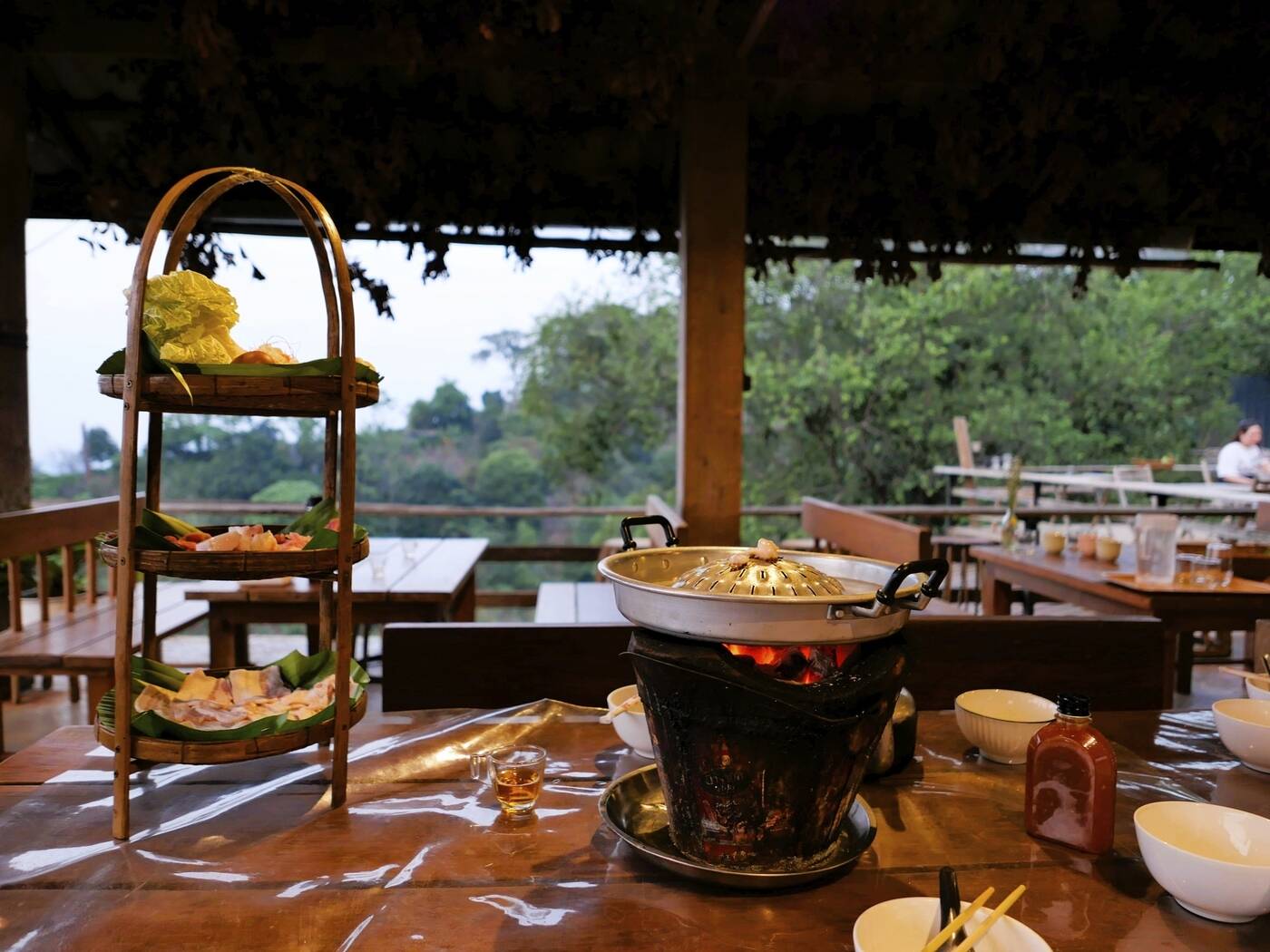 Am späten Nachmittag brechen wir erneut auf und fahren in das nahegelegene Dorf Nong Mai Ngam – übersetzt: „Ort der schönen Bäume“. Hier erleben wir einen besonders authentischen Einblick in das ländliche Leben des Isan. Zu Gast bei einer thailändischen Familie erwartet uns ein geselliger Abend ganz im Zeichen regionaler Gastfreundschaft. Beim gemeinsamen Abendessen genießen wir eine traditionelle Spezialität: Moo Krata, eine Kombination aus Grillen und Suppe Kochen direkt am Tisch – alternativ wird auch eine vegetarische Variante angeboten. In lockerer Atmosphäre kommen wir miteinander ins Gespräch, tauschen uns aus und tauchen ein in den entspannten Alltag auf dem Land.
