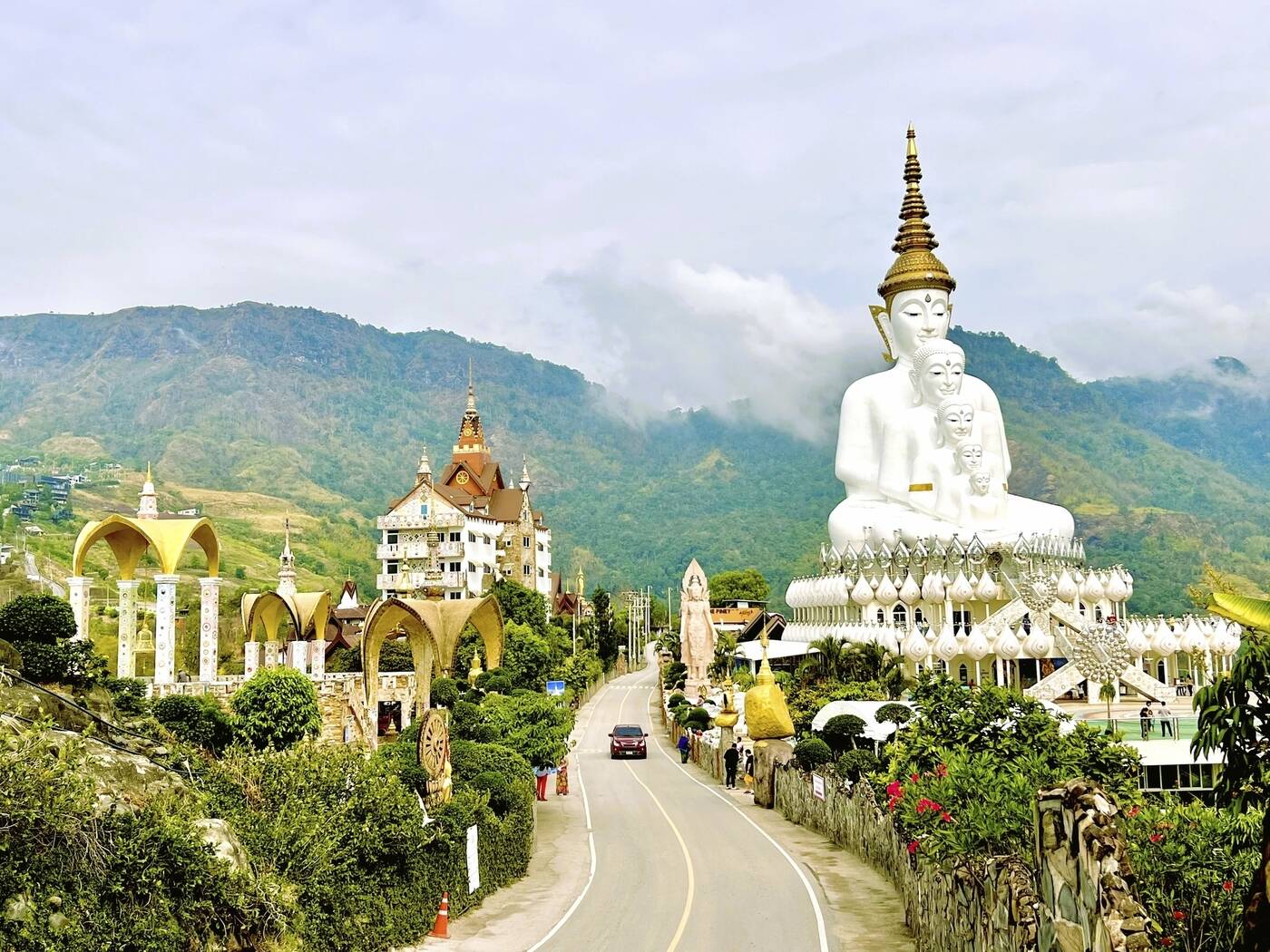 Wir verlassen Sukhothai und fahren zunächst nach Phitsanulok, der größten Stadt Zentralthailands. Hier besuchen wir den Wat Mahathat, dessen prachtvoll vergoldete Buddha-Statue - der Phra Phuttha Chinnarat – als eine der schönsten des Landes gilt. Ihre vollkommene Form diente zahlreichen Abbildungen im In- und Ausland als Vorbild. Anschließend geht es weiter durch die abwechslungsreiche Landschaft Zentral- und Nordostthailands: Felder, Wälder, Marktstände und sanfte Hügel begleiten unseren Weg. Gelegentlich legen wir unterwegs einen Fotostopp ein, um die Szenerie in Ruhe auf uns wirken zu lassen. In der Bergregion bei Khao Kho machen wir Halt am außergewöhnlichen Wat Phra Sorn Kaew. Die vergleichsweise neue Tempelanlage beeindruckt durch ihre extravagante Architektur und spektakuläre Lage. Eine strahlend weiße Buddha-Statue in Meditationshaltung thront vor einer Kulisse aus sattgrünen Berghängen. Direkt daneben fasziniert ein farbenfroher Mosaiktempel, der in seiner verspielten Gestaltung an Werke von Hundertwasser oder Salvador Dalí erinnert.
