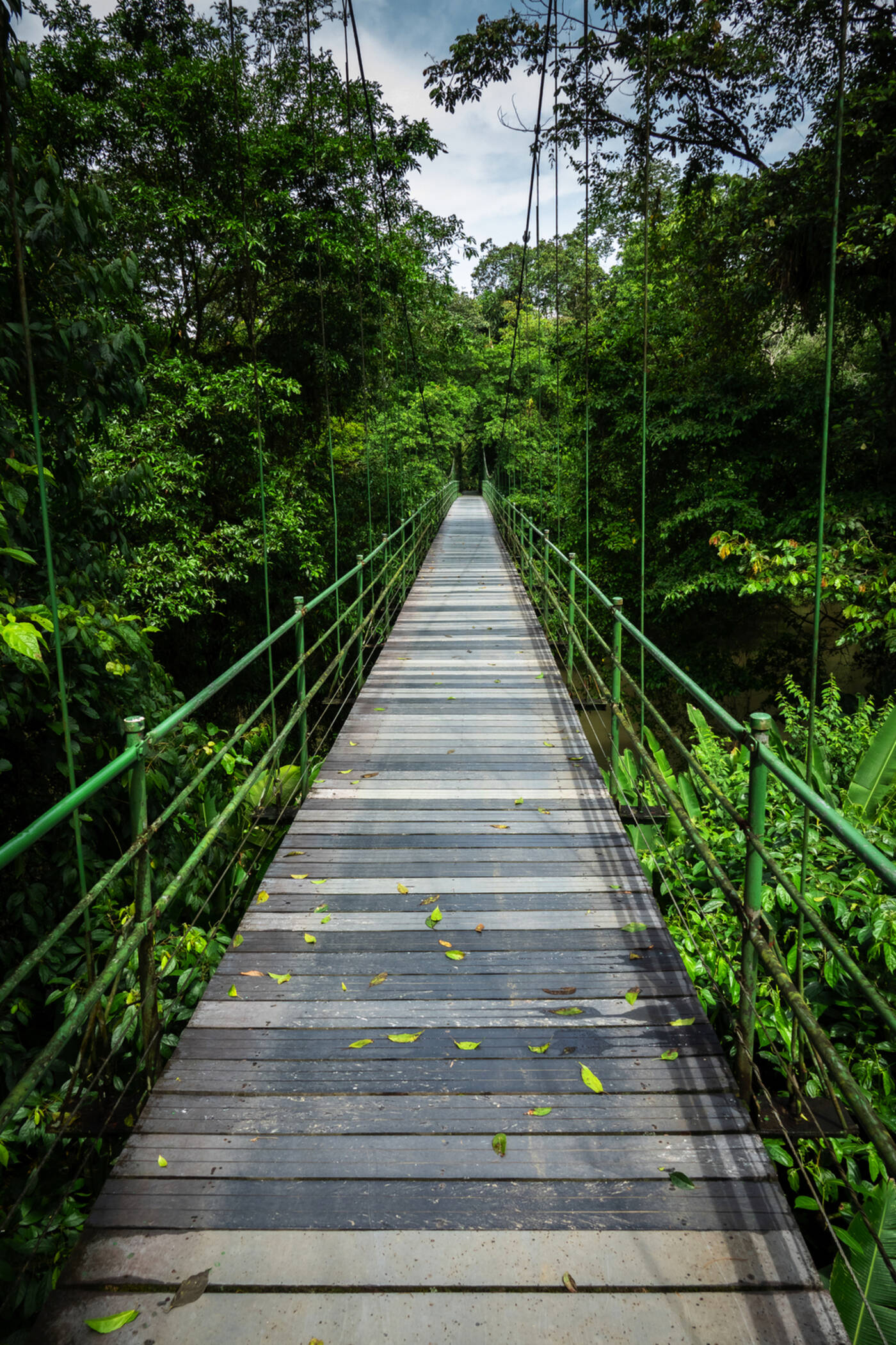 Die Gegend von Sarapiquí ist bekannt als eine der vielseitigsten Regenwald-Destinationen Costa Ricas. Private Reservate, Forschungseinrichtungen, reiches Tierleben entlang der Flüsse und in den Wäldern sowie zahlreiche Abenteuer-Optionen wie Rafting und Canopy (Zipline) gehören zu den Attraktionen. “Puerto Viejo“, der alte Hafen, heißt nicht zufällig so. Bis weit ins 19. Jh. hinein hatte Costa Rica keinen eigenen Hafen an der Karibik. Deutsche und andere europäische Einwanderer landeten damals an der Küste von Nicaragua und gelangten auf dem Fluss bis Puerto Viejo. Von hier ging die beschwerliche Reise zu Fuss hinauf ins Zentraltal. Gleich neben unserer Lodge liegt das Regenwaldreservat Tirimbina. Am Vormittag unternehmen wir eine Wanderung im Regenwaldreservat Tirimbina. Das Reservat umfasst verschiedene Habitate mit jeweils eigenen charakteristischen Arten wie Flussufer, eine Insel, Wald und Pflanzungen. Eine fast 300 m lange Brücke überspannt den Sarapiquí-Fluss und die Insel Tirimbina. Dabei erleben wir auch die Verarbeitung von Kakao. Am Nachmittag fahren wir durch die fruchtbare Ebene des Nordens nach La Fortuna. Zuckerrohr, Ananas, Papaya, Yuca und Zitrusfrüchte sind die wichtigsten Anbauprodukte dieser Region.